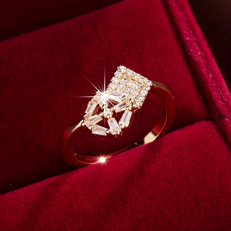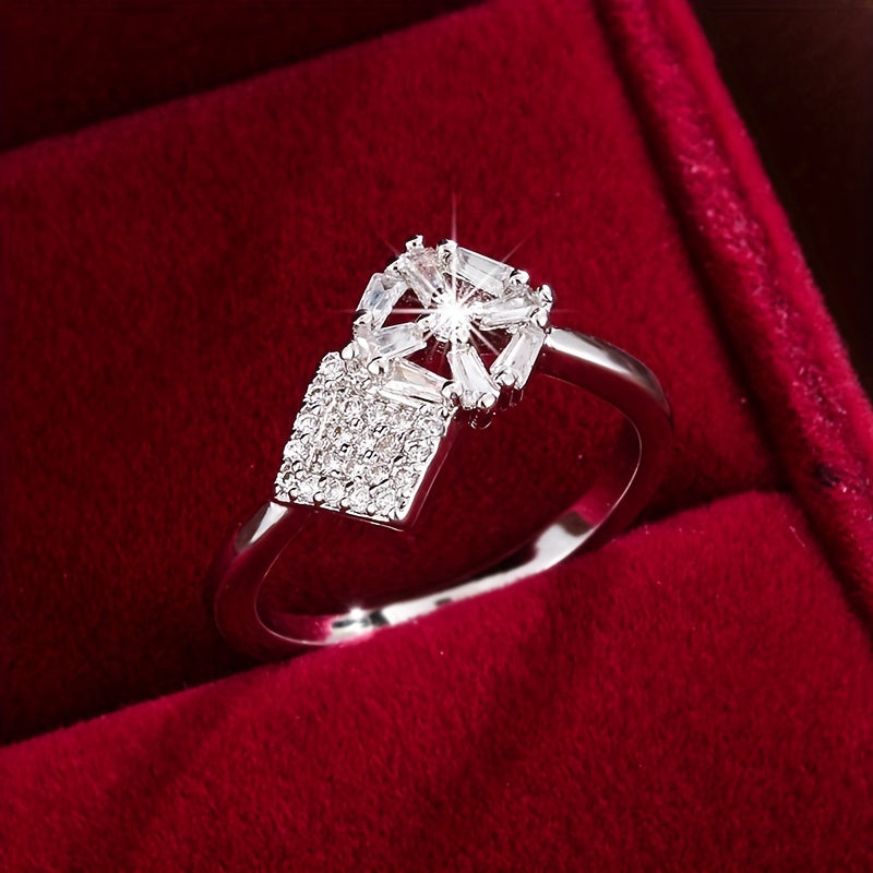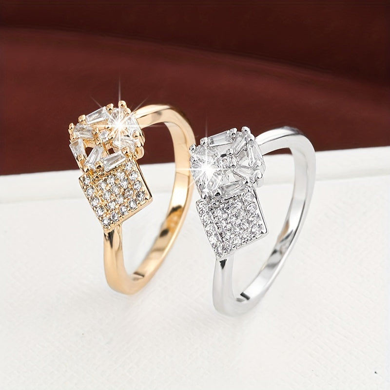 This unique ring features sparkling zircon inlaid on a creative square shape design. Perfect to match your daily outfits or give as a special gift to a loved one. Available in two classic colors to choose from.
