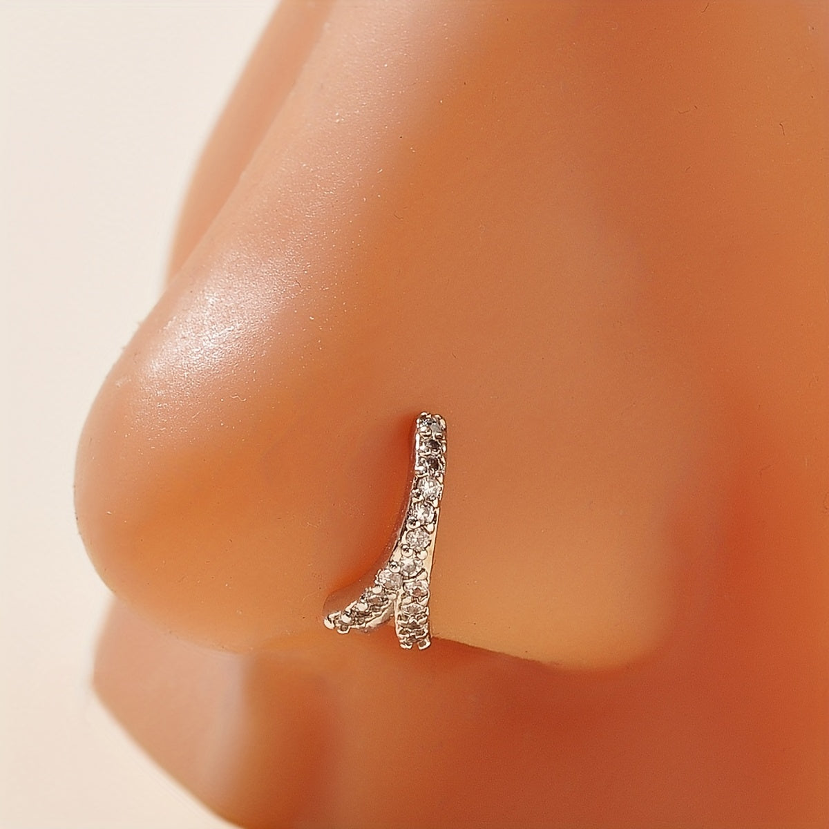 Elegant non-piercing nose clip featuring a Y-shaped design with zircon inlay. Made of high-quality copper.