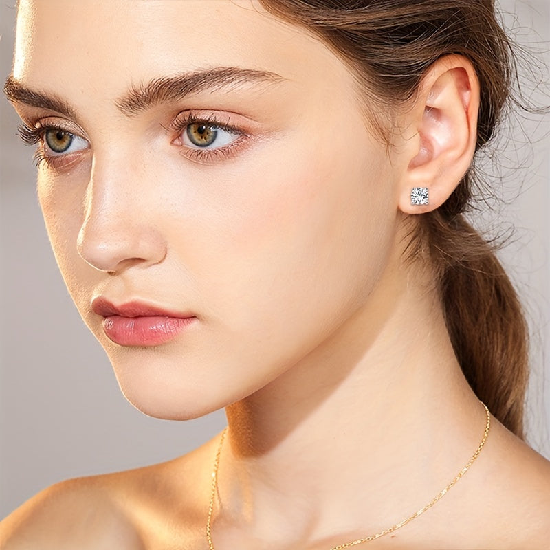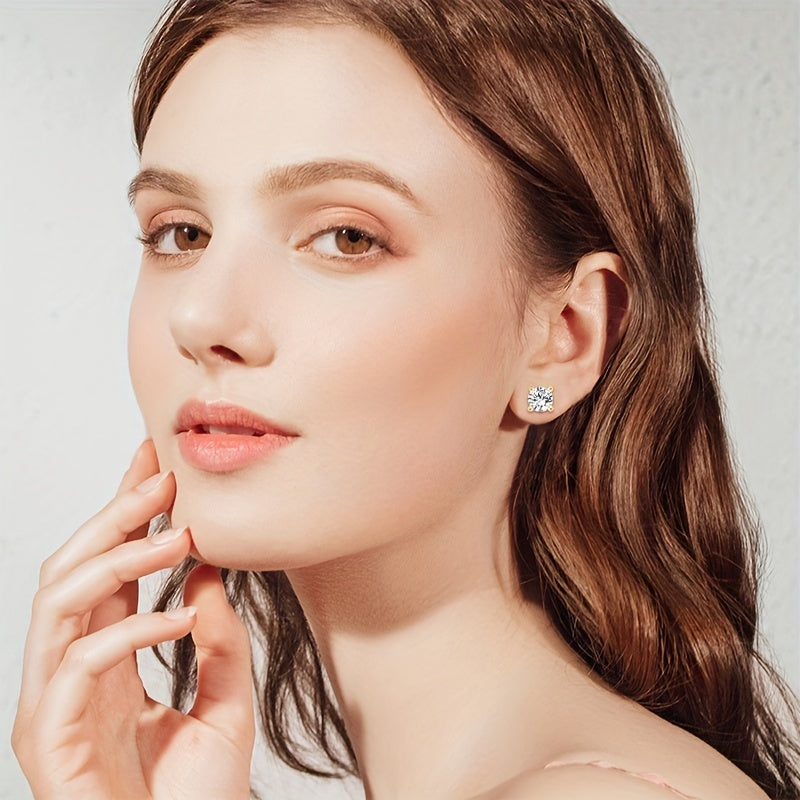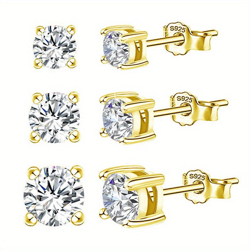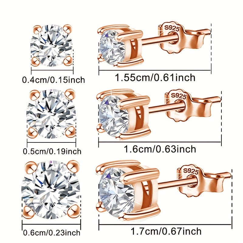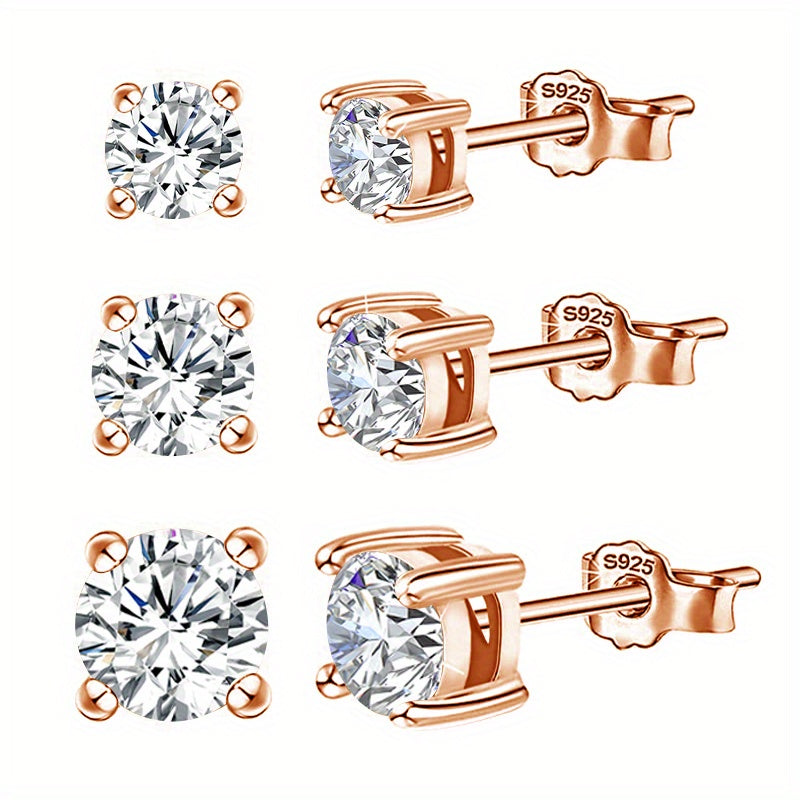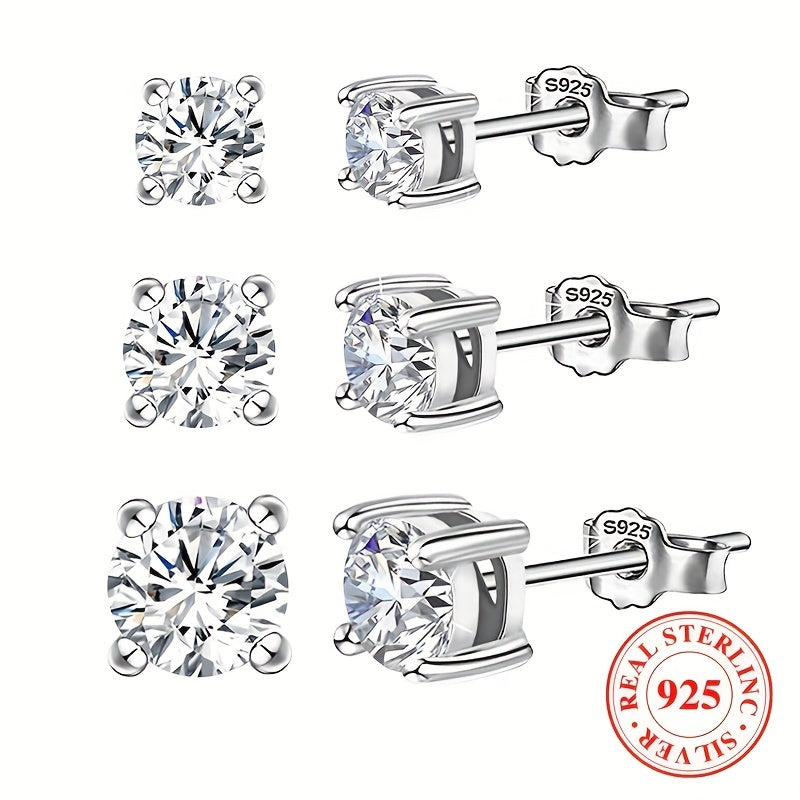 These minimalist stud earrings feature sparkling zircon stones. Made of sterling 925 silver, perfect for daily casual wear.