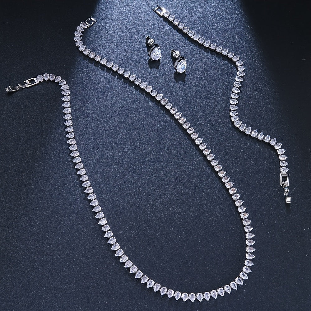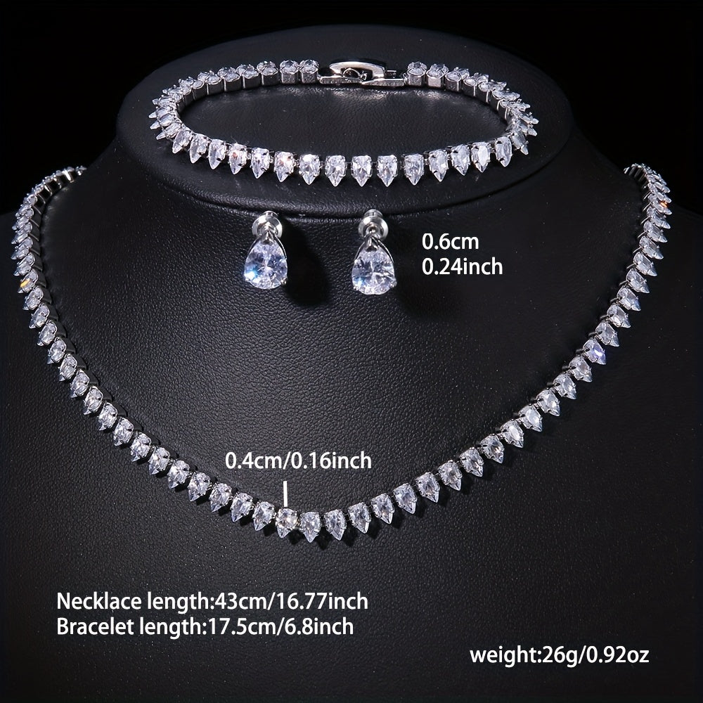 Complete your elegant look with this stunning water drop shape zircon jewelry set.
