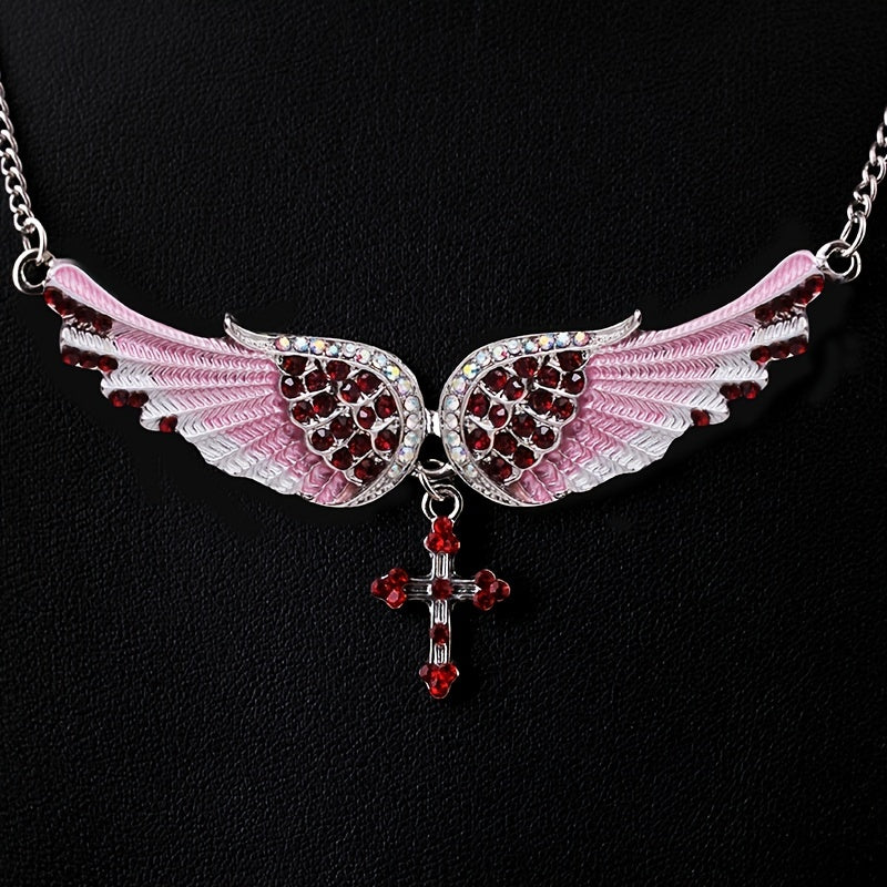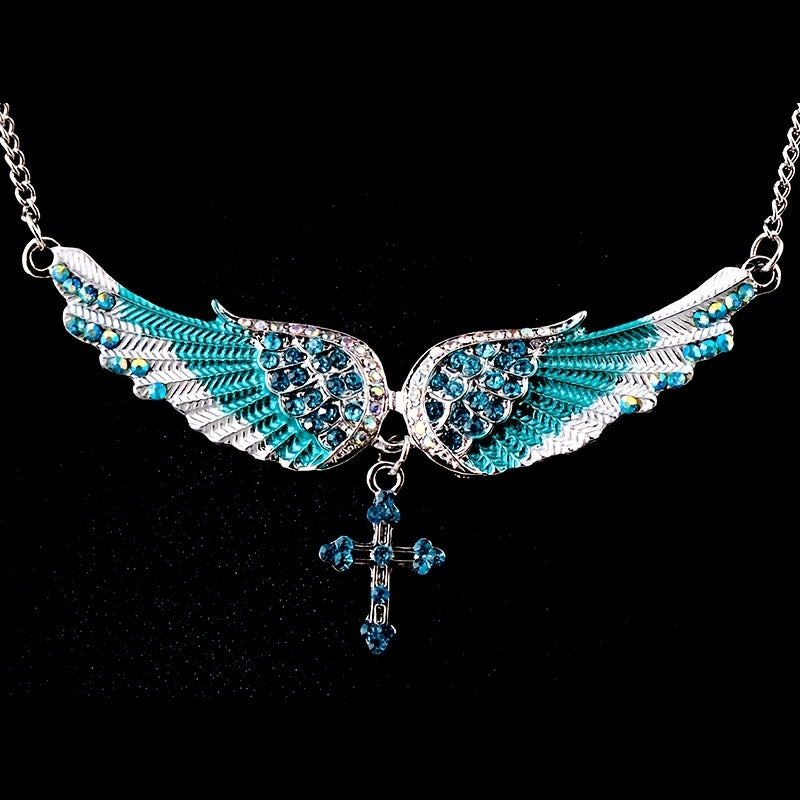 Elegant jewelry featuring wings cross shape with inlaid zircon stones for a luxurious look.