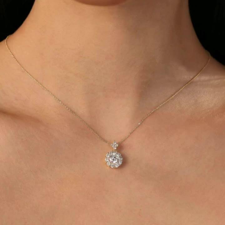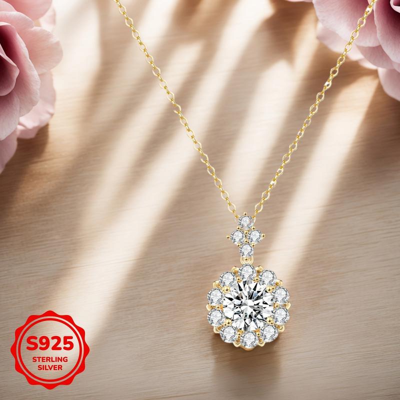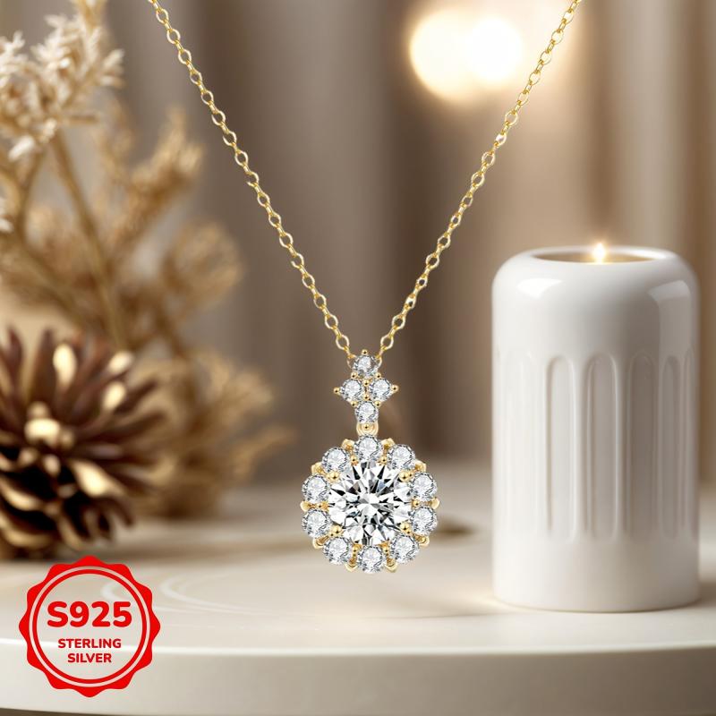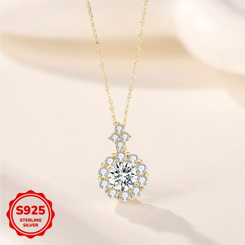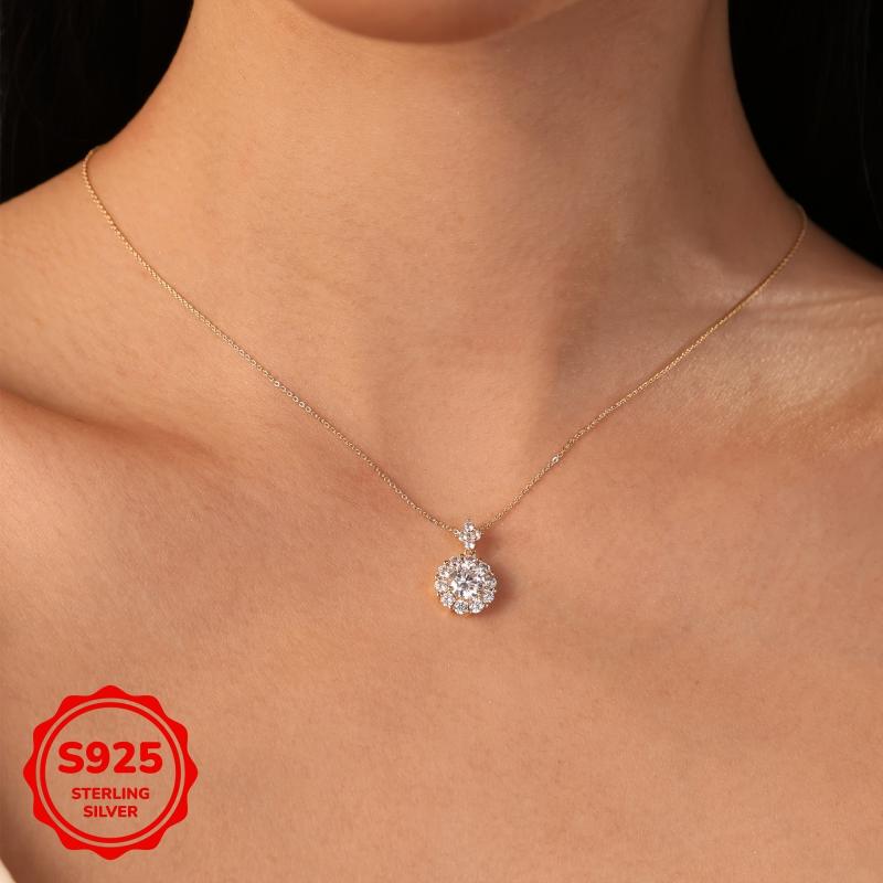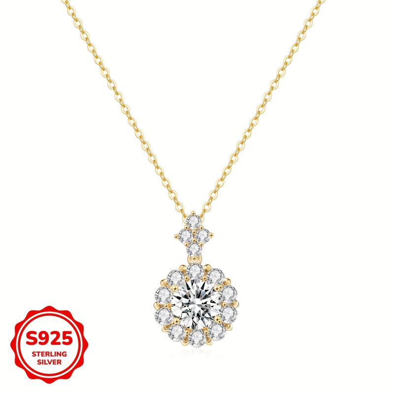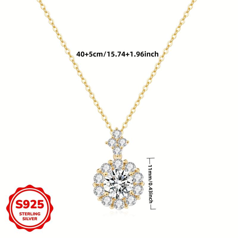 This stunning necklace features a shining round synthetic zirconia inlaid pendant on a hollow S925 sterling silver chain. Perfect for gifting or adding a touch of elegance to your outfit.