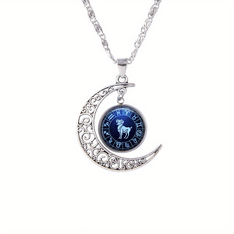 Embrace the cosmic universe with this stunning zodiac moon necklace featuring time gem pendant. A must-have accessory for women who love the starry night sky.