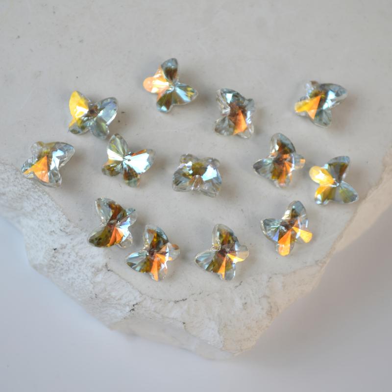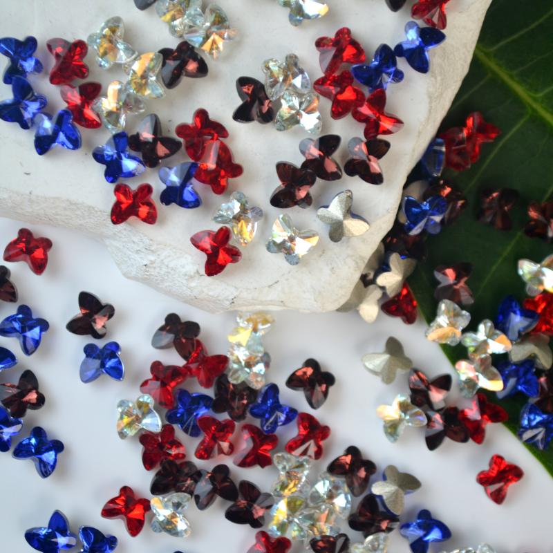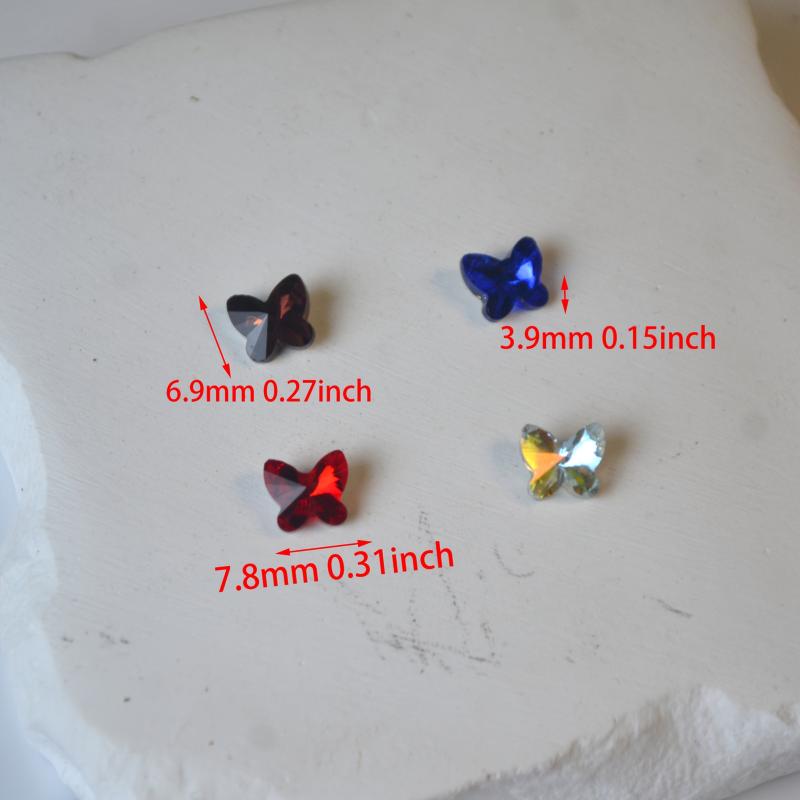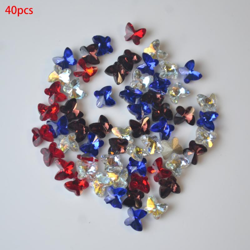 This set includes 40 butterfly shaped glass mini nail art decorations with a straight hole for easy application. Perfect for DIY nail art projects.