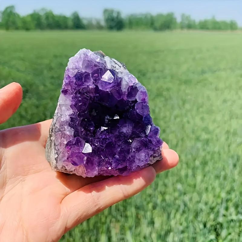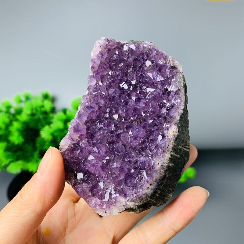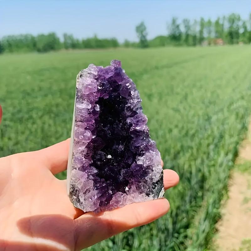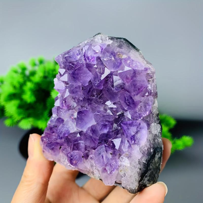 This natural Brazilian crystal cluster features deep violet to purple hues, making it a stunning addition to your home or office decor. The heavyweight 180g-260g rough crystal formation adds a touch of elegance and mystique to any space.