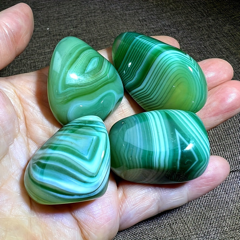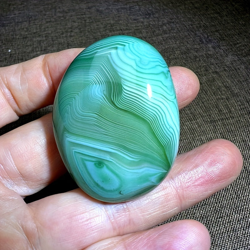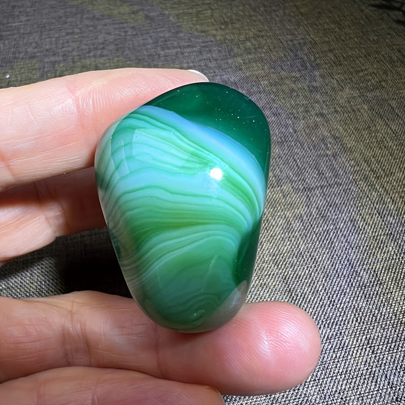 This natural green agate palm stone is perfect for creating unique jewelry pieces. It is polished to a smooth finish and features beautiful stripes that add to its charm.