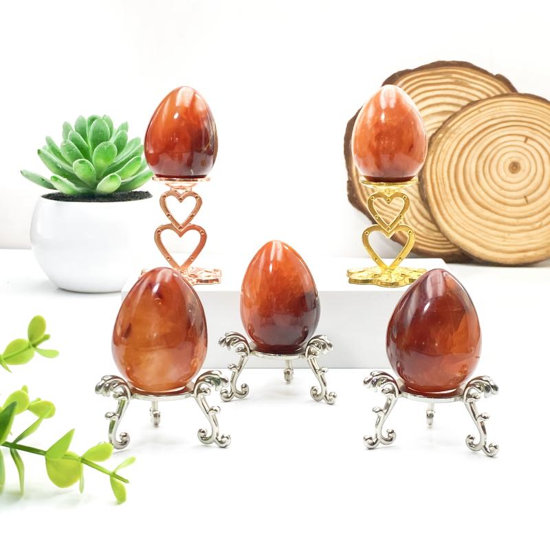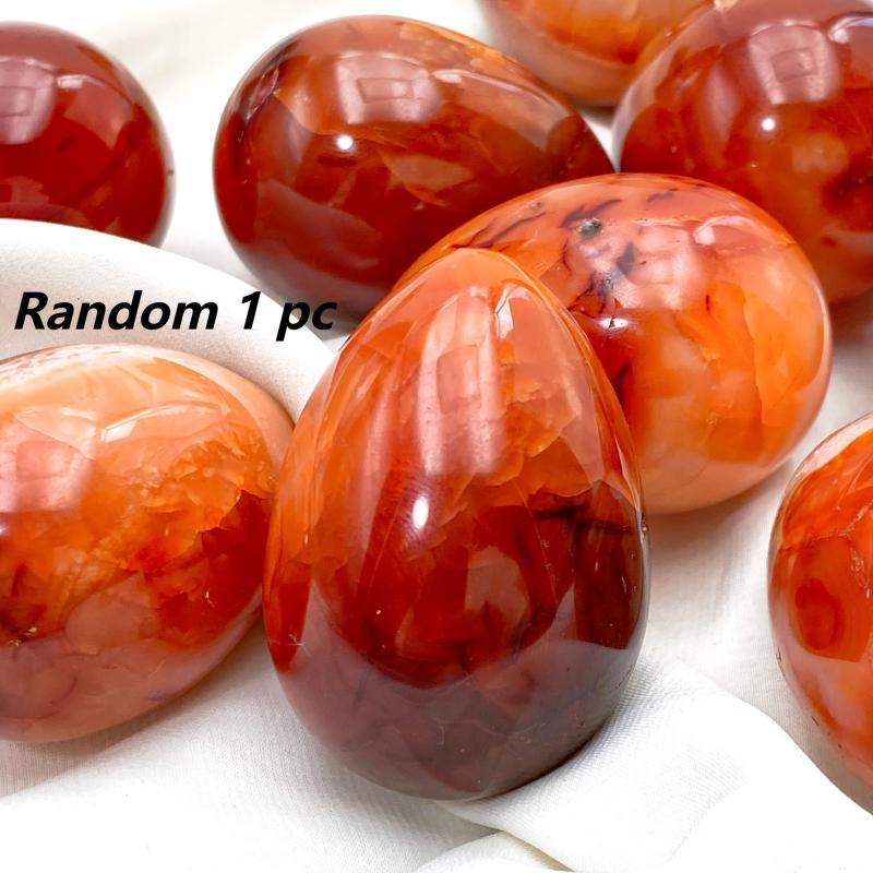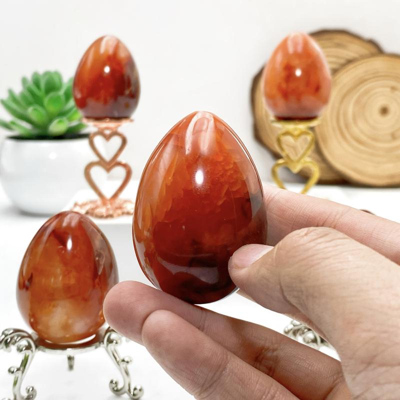 Add a touch of elegance with this polished carnelian egg stone featuring a beautiful geometric pattern. Perfect for room decoration and holiday festivities.