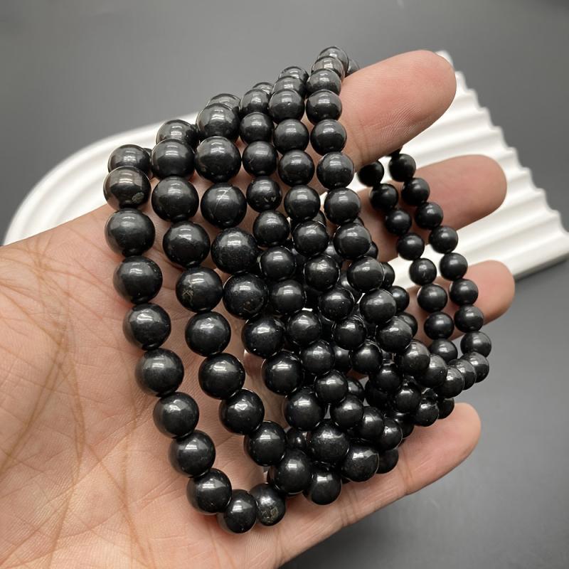 This bracelet is made of round Shungite beads, known for spiritual cleansing, grounding, and protection. It is suitable for DIY jewelry making and is a unisex stone jewelry option.