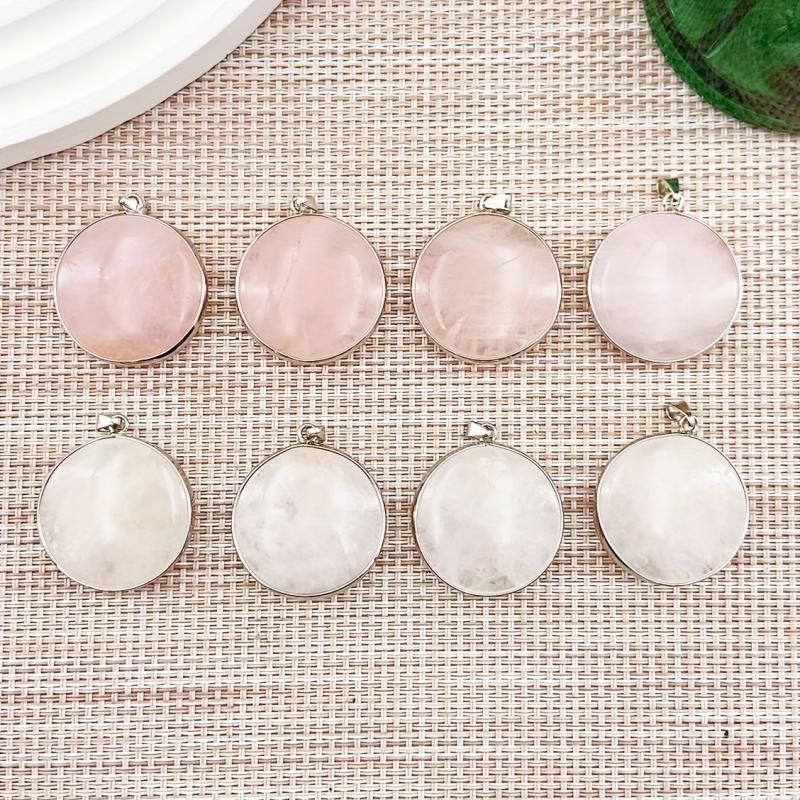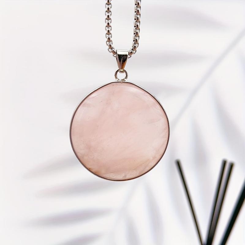 Elegant and handmade, this round crystal pendant is perfect for DIY jewelry making or as a thoughtful gift. The polished stone shines beautifully and hangs from a long chain, making it a versatile accessory.