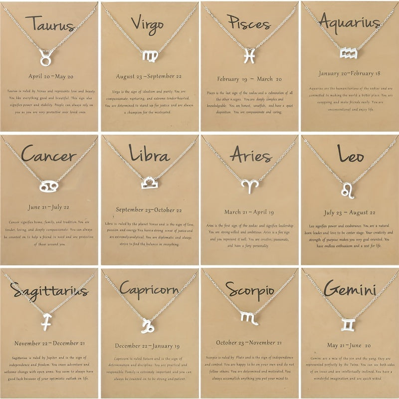 Express your zodiac sign with this elegant pendant necklace featuring the 12 astrological star signs.
