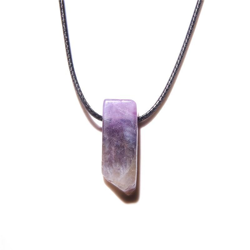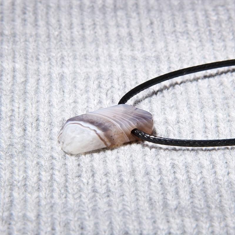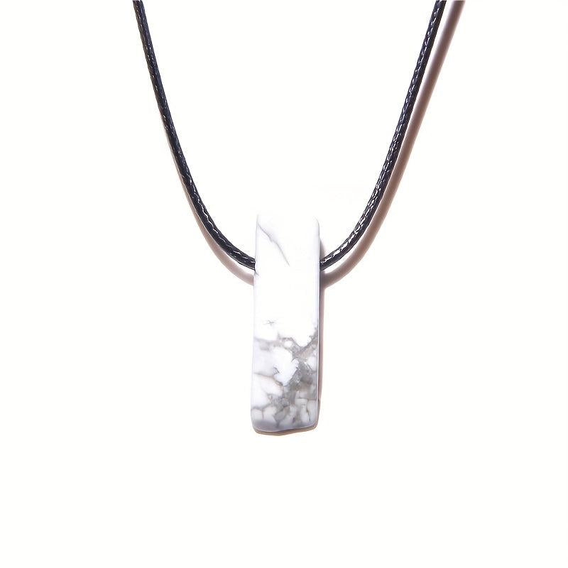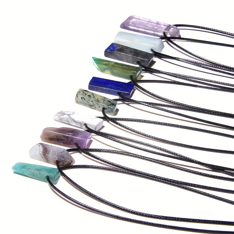 This boho-style necklace features a natural stone pendant on an adjustable faux leather rope. The vibrant colored stones make it an ideal casual accessory for men.