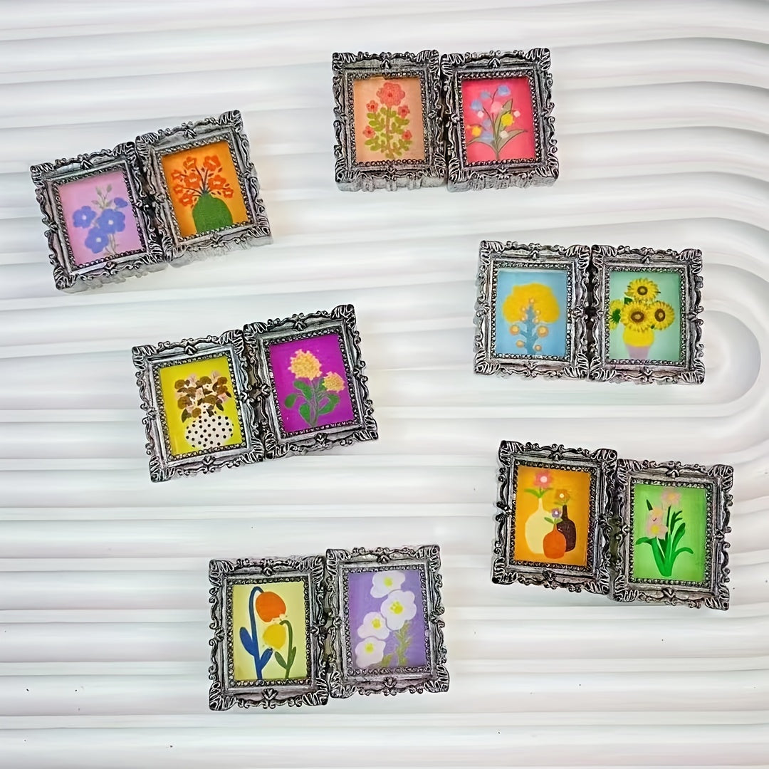 10pcs Retro Oil Painting Charms Mini Photo Frame DIY Jewelry Accessories