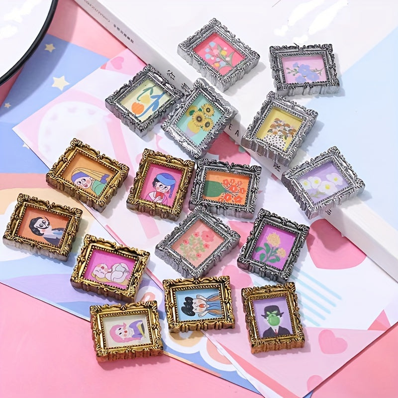 These retro oil painting charms are mini photo frames perfect for DIY jewelry projects. Each set contains 10 random designs to add a vintage touch to your creations.