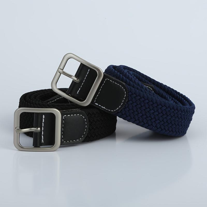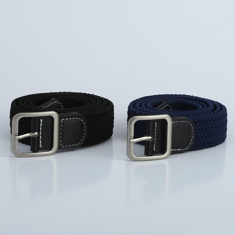 These 2pcs men's belts are made of elastic stretch material and feature adjustable design for a comfortable fit. The durable braided construction ensures long-lasting use, perfect for students.