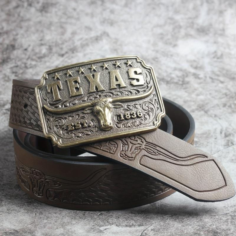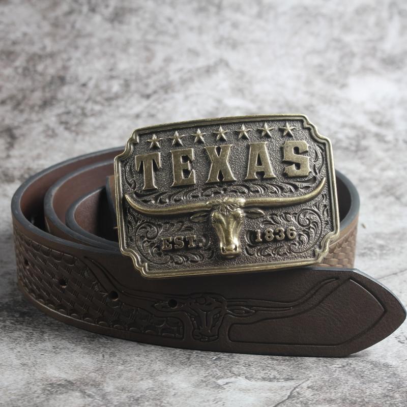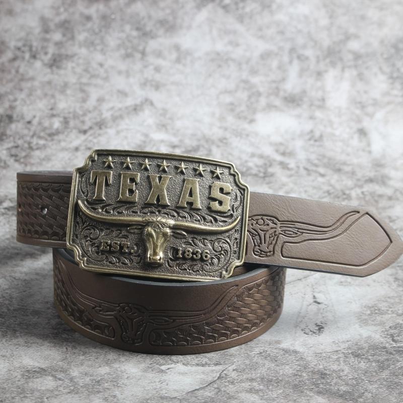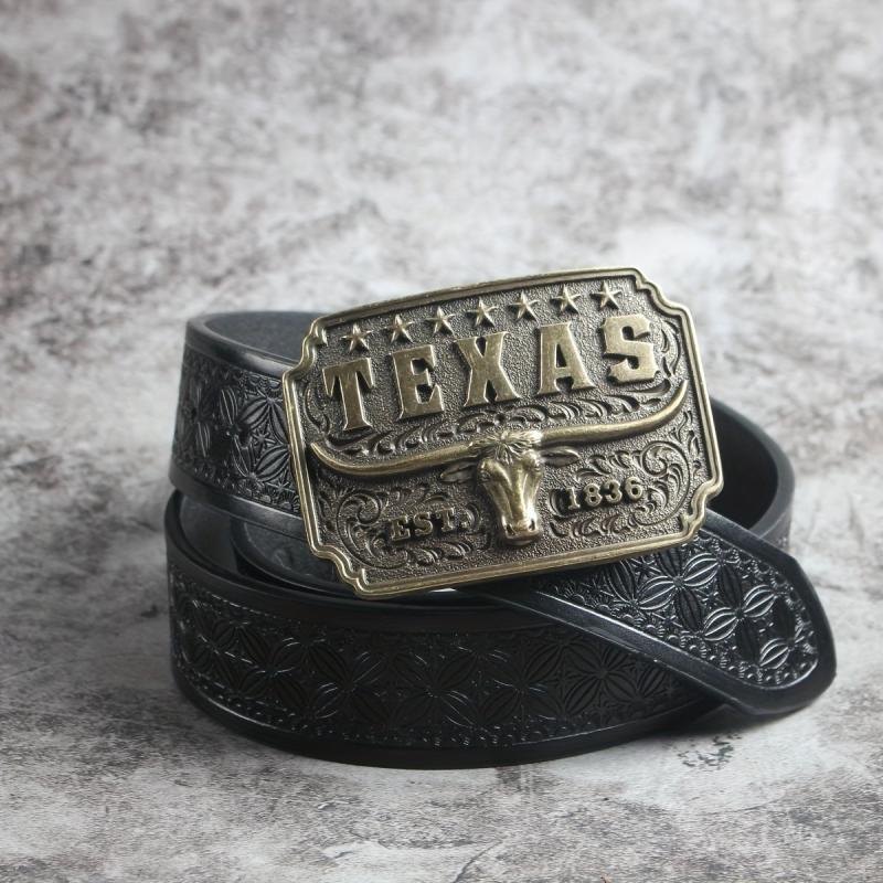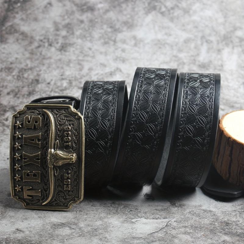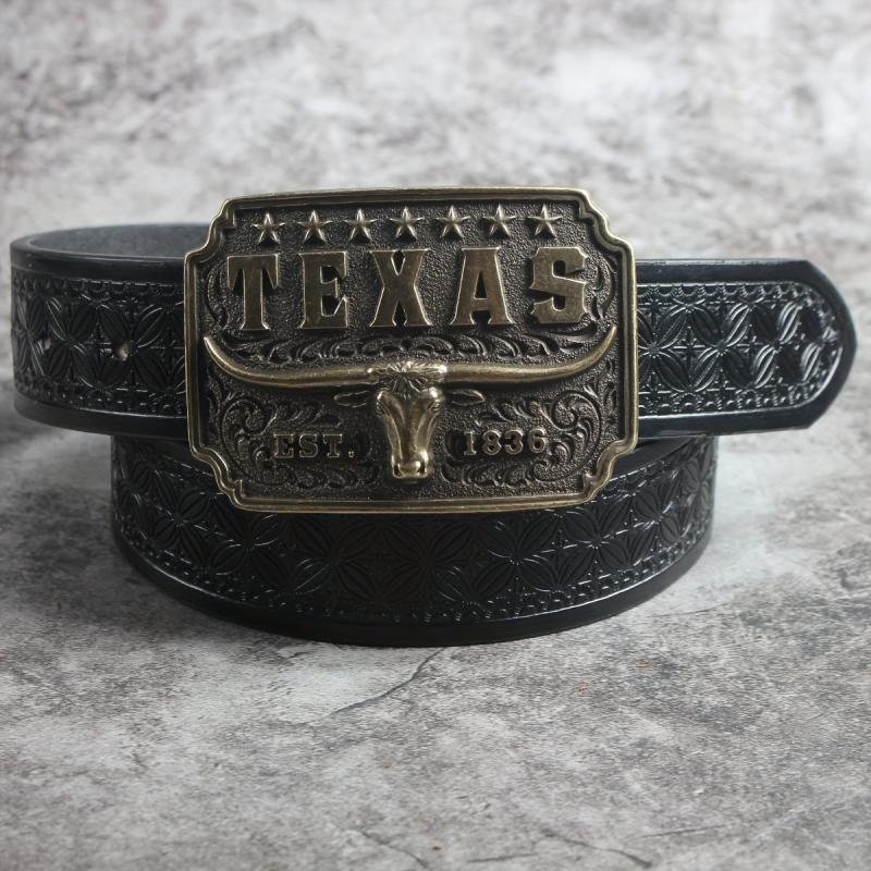 3 Wide Faux Leather Belt Unisex Retro Texas Buckle Casual Attire