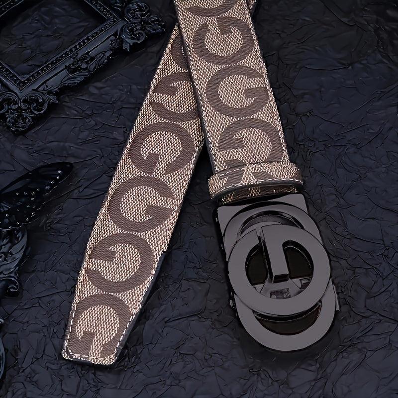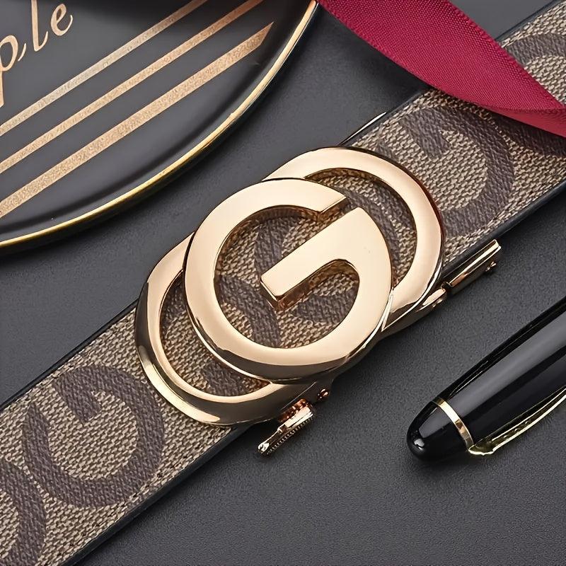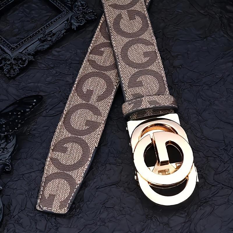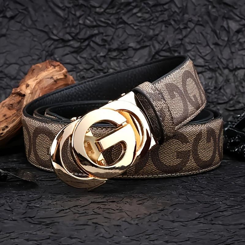 Upgrade your wardrobe with this stylish faux leather belt featuring a golden tone buckle. It's perfect for both business and casual outfits.