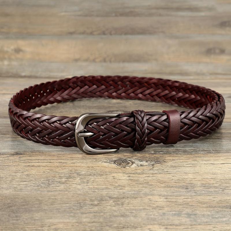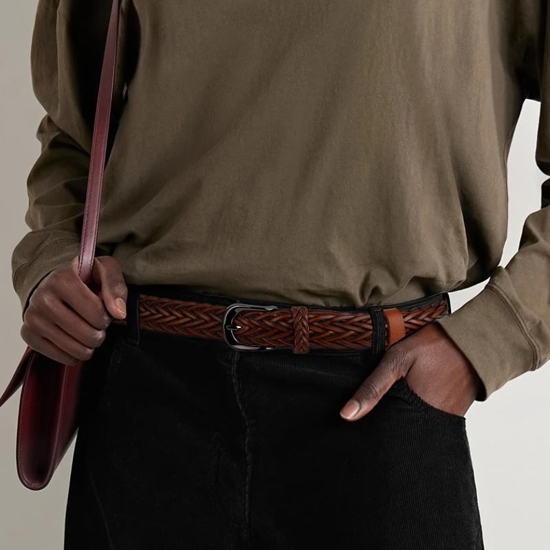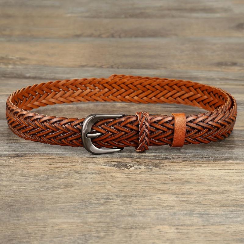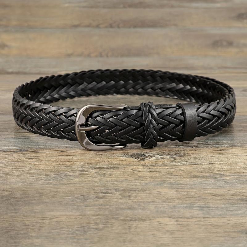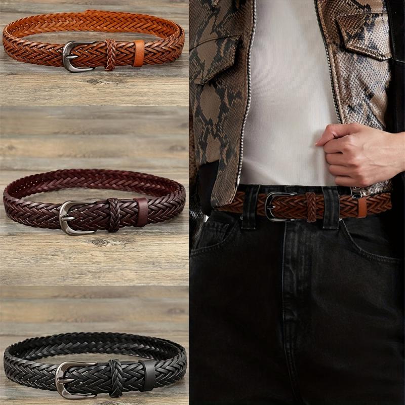 This vintage bohemian handwoven belt is made with durable microfiber faux leather and features a polished buckle. Perfect for jeans and casual wear, it has a classic square buckle that adds a versatile touch to your outfit.