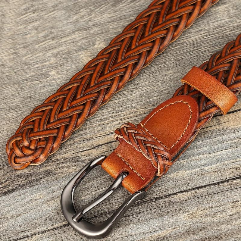 Boho Handwoven Belt Microfiber Faux Leather Braided for Jeans