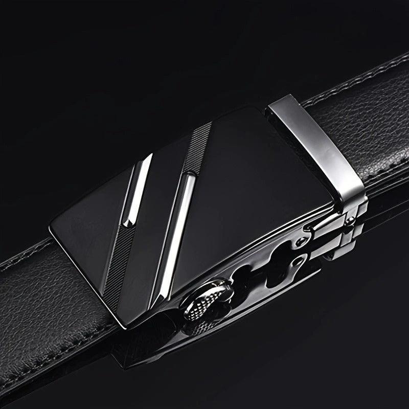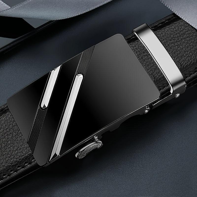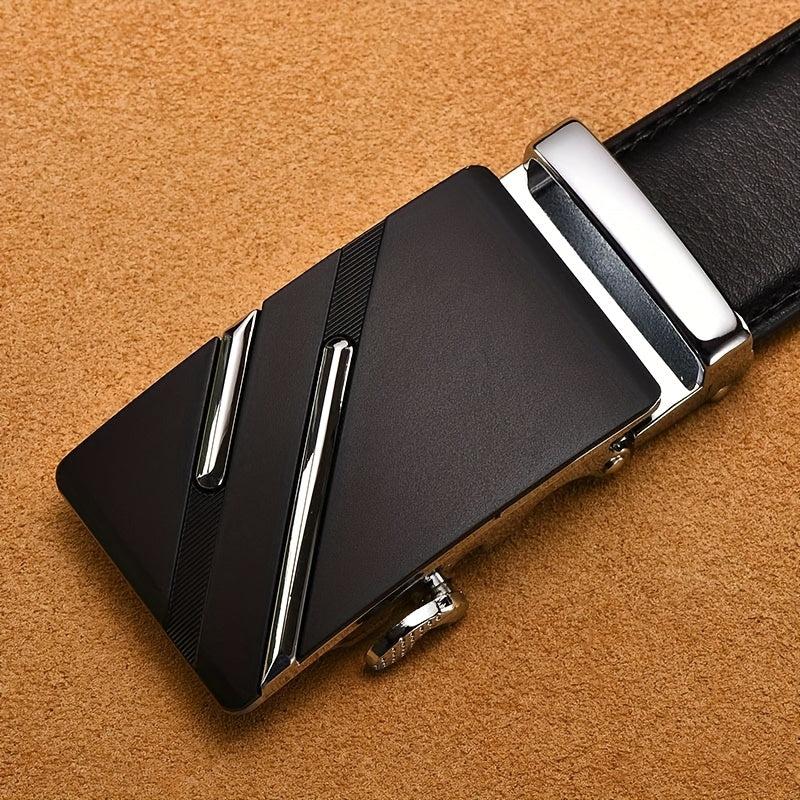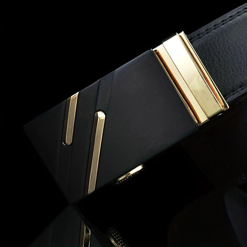 This faux leather belt with a golden tone buckle is perfect for both business and casual attire. The sleek buckle features automatic release for convenience.