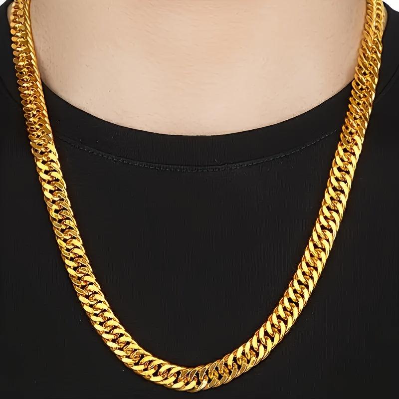Stand out with this goldene long chain necklace designed for men. Made of iron, it embodies a punk street style perfect for occasions like Mardi Gras, Father's Day, and Halloween. Non-magnetic design with no pendant.