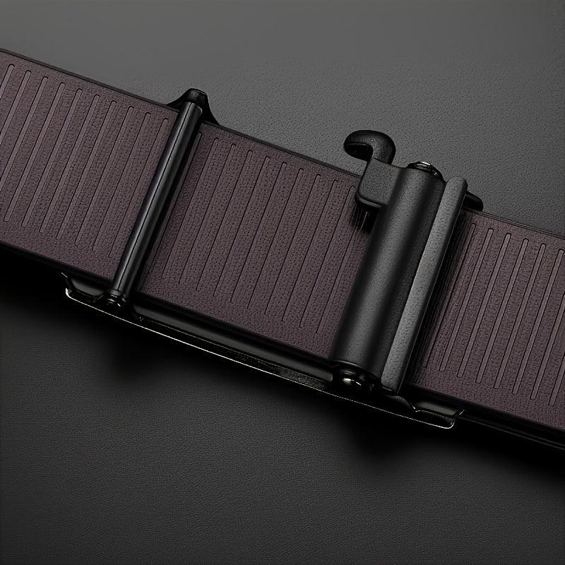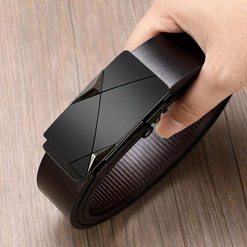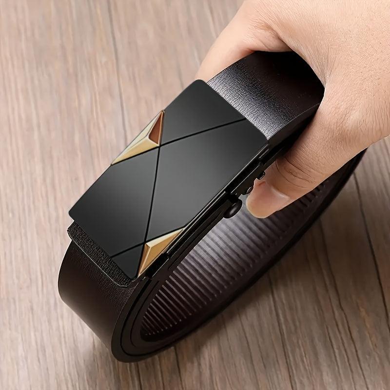 Men's Automatic Buckle Faux Leather Belt with Geometric Pattern