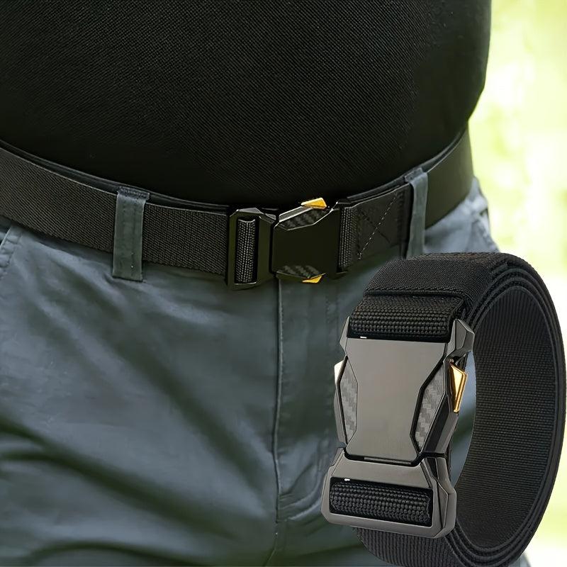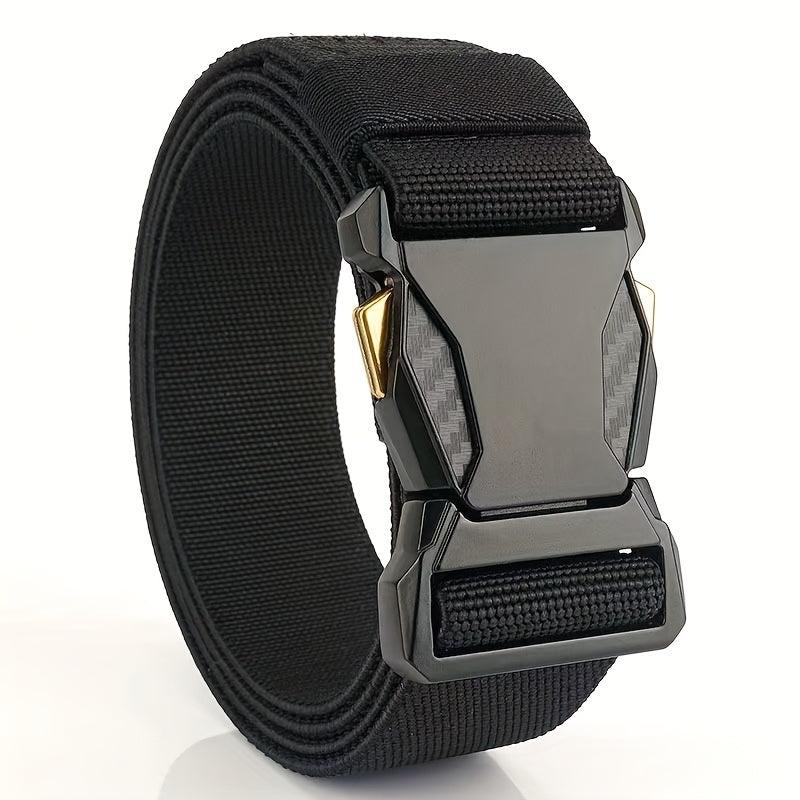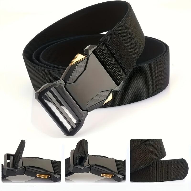 This men's casual sports belt features a durable plastic buckle and functional canvas waistband, making it perfect for jeans. It is an ideal gift for men who value style and functionality.