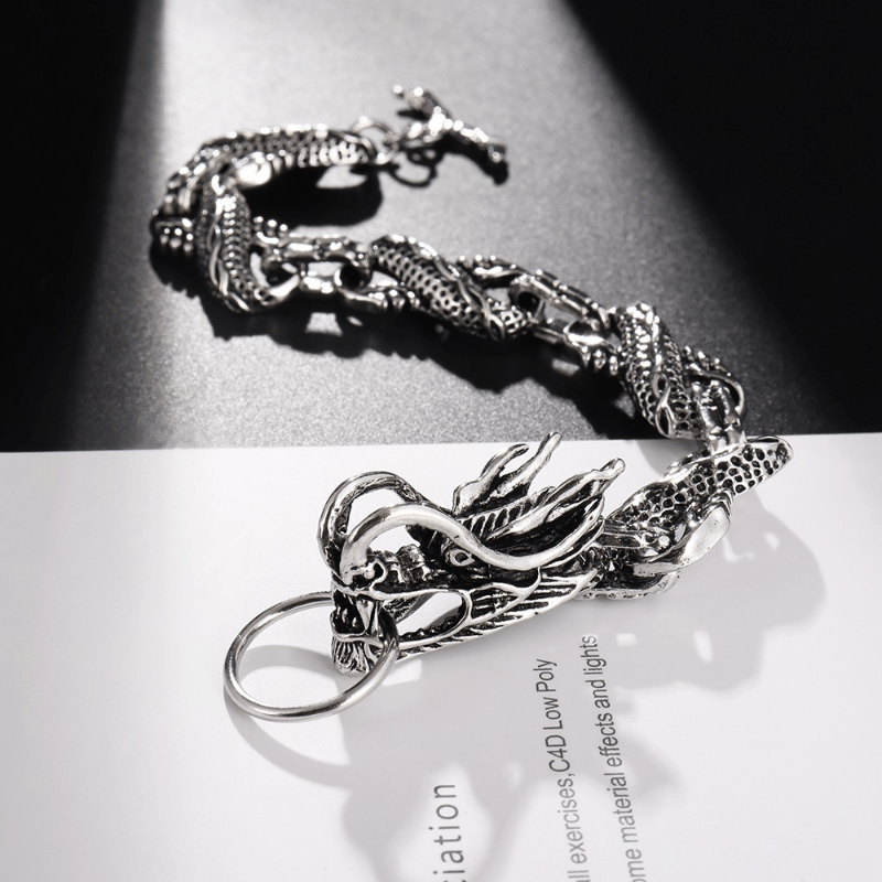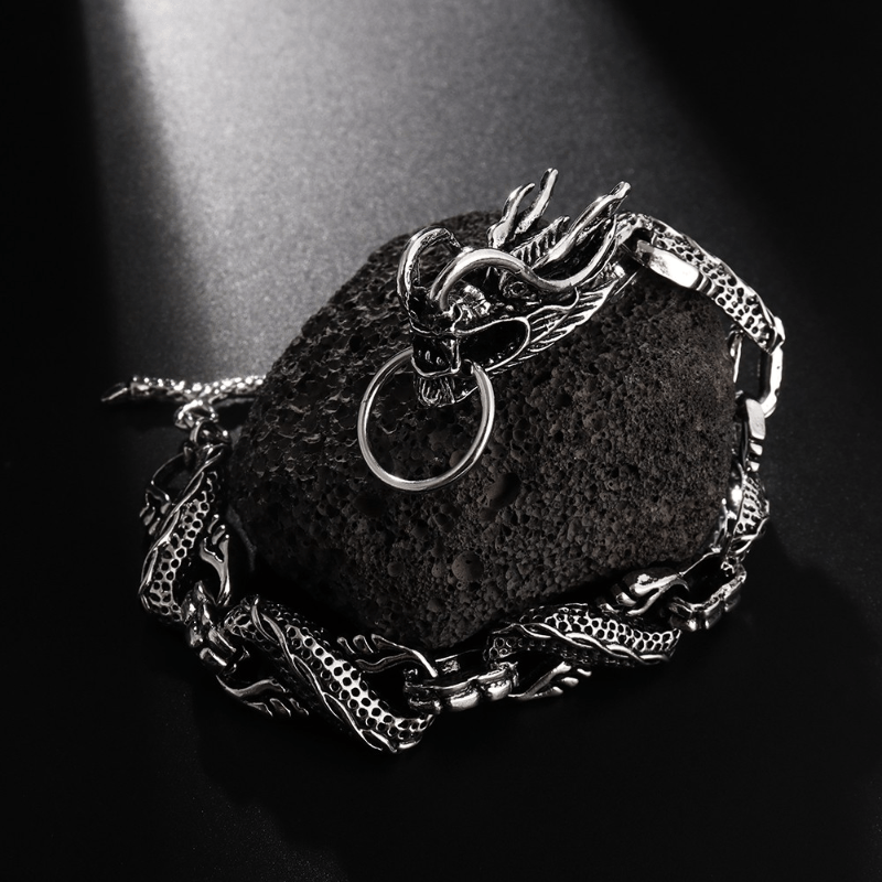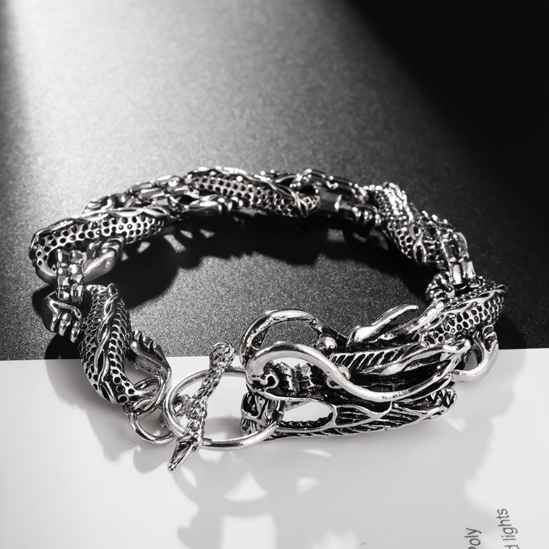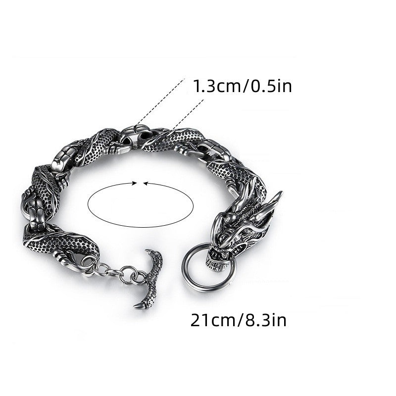 Add a touch of domineering charm with this retro dragon head bracelet. Perfect accessory for hip-hop enthusiasts. Ideal gift for birthdays or special occasions.