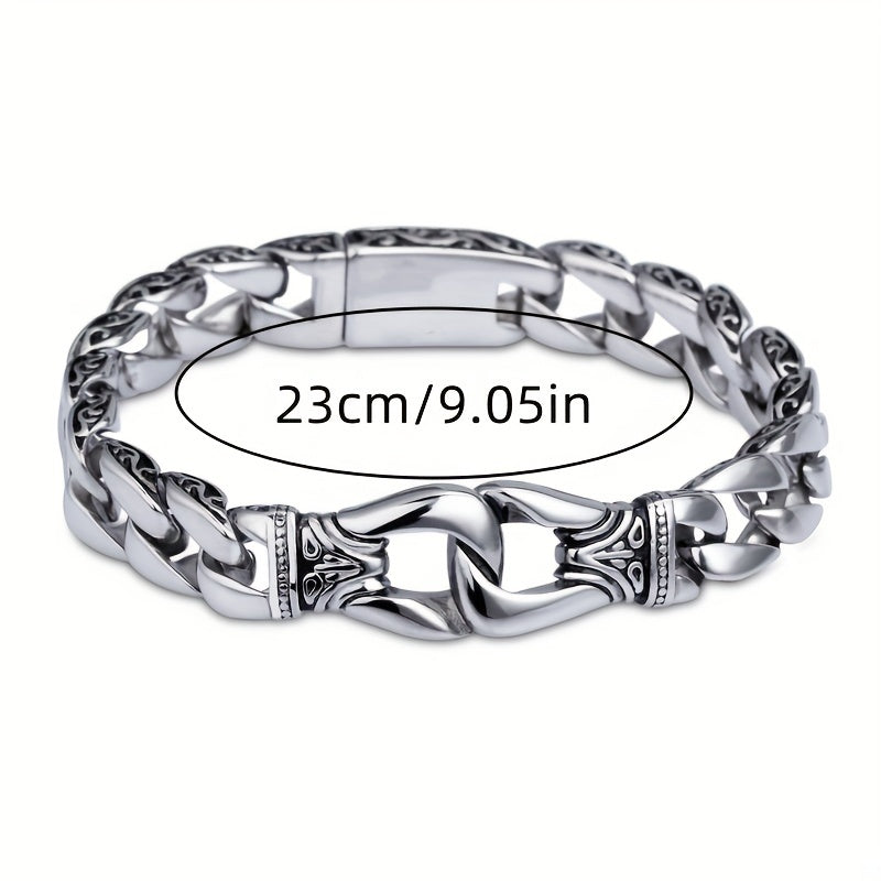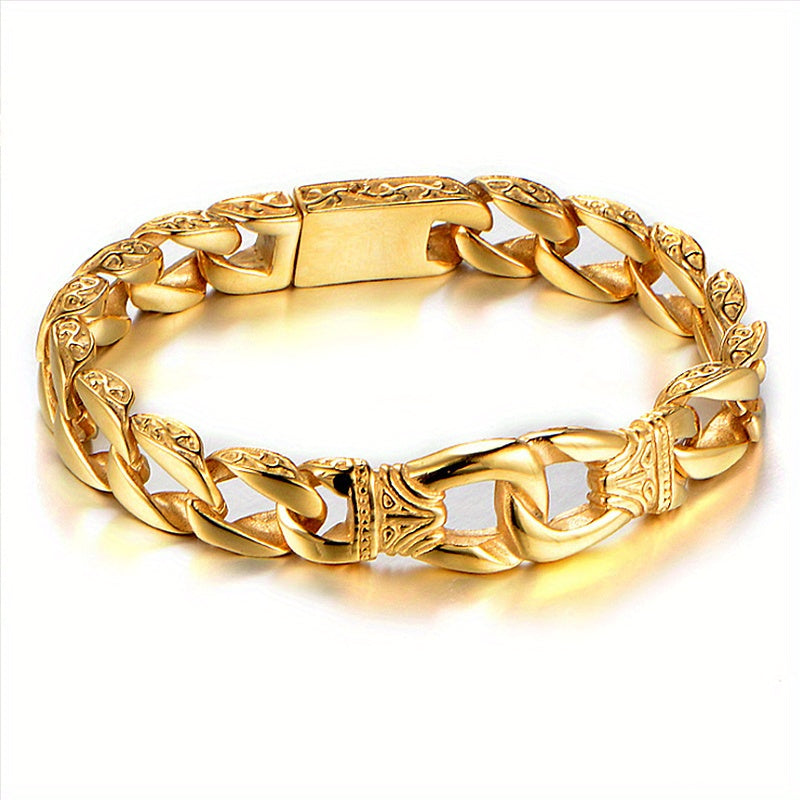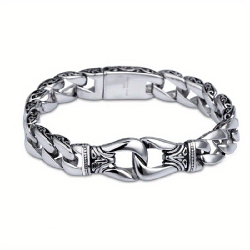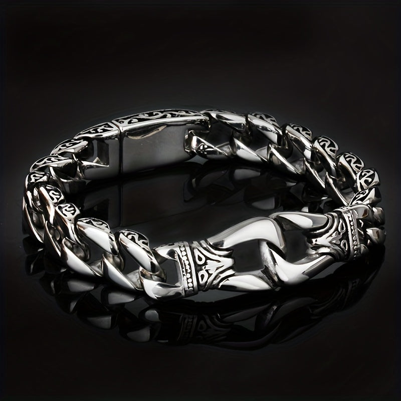 This Cuban chain bracelet features a metal buckle, perfect for a punk rock knight look. Stand out with this unique and stylish piece of jewelry.