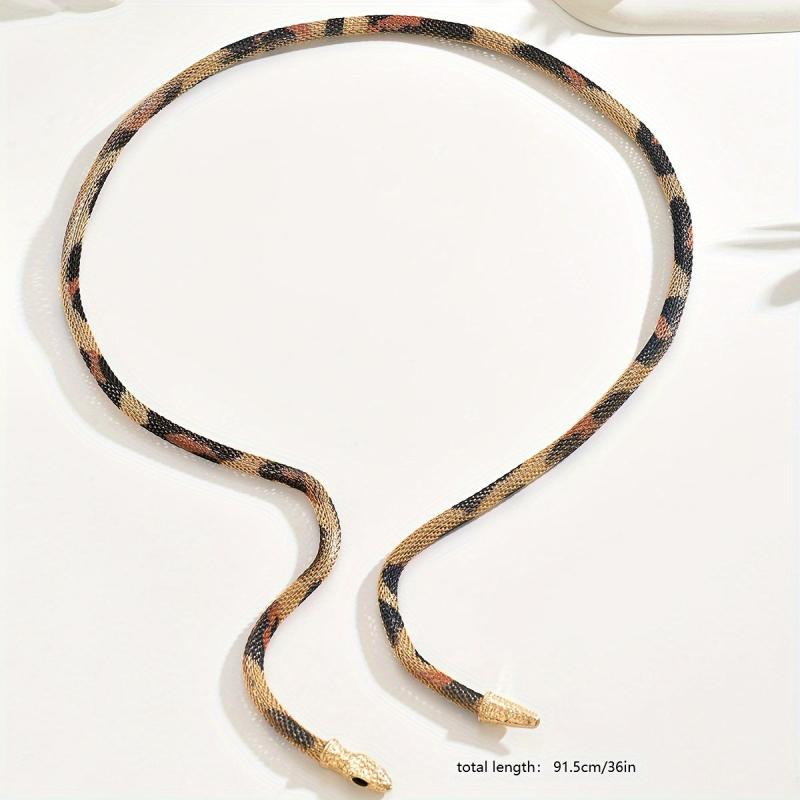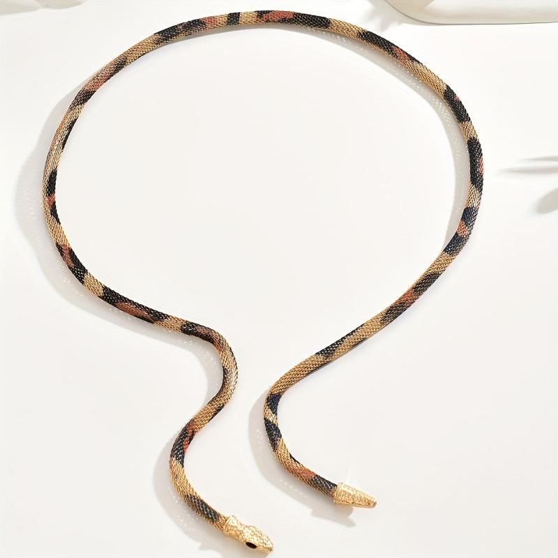 Add a wild touch to your look with this double loop choker necklace featuring a flexible snake design in multicolor leopard print. Perfect for parties and everyday wear.