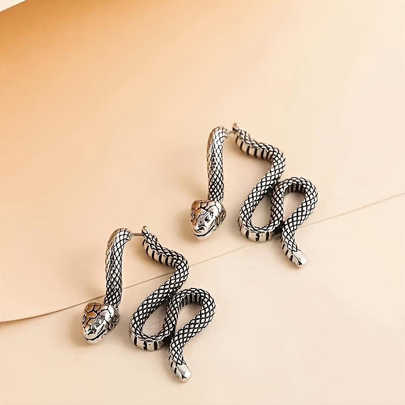 Embrace the retro punk vibe with these snake shaped ear studs that can be detached into front and back pieces.