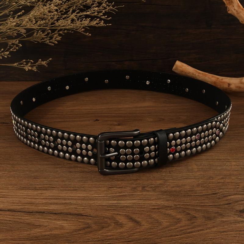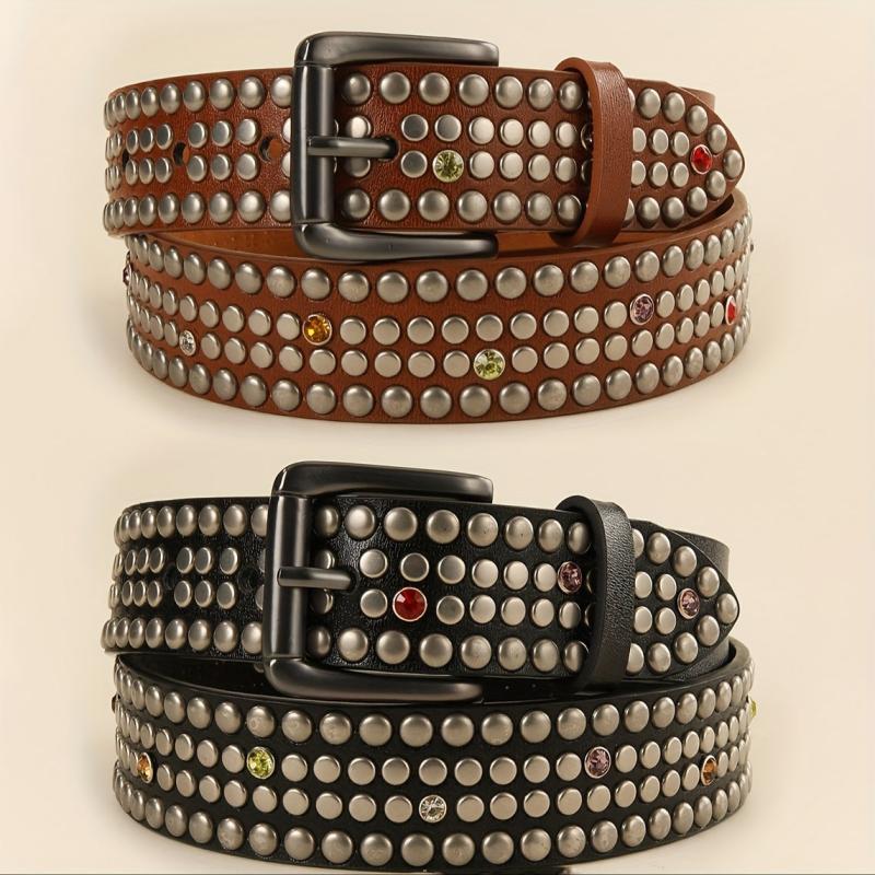 Add a touch of punk-inspired style to your everyday look with this mushroom studded belt. Made of stylish brown faux leather with an alloy buckle, this belt is perfect for your daily commute or as a fun everyday accessory.