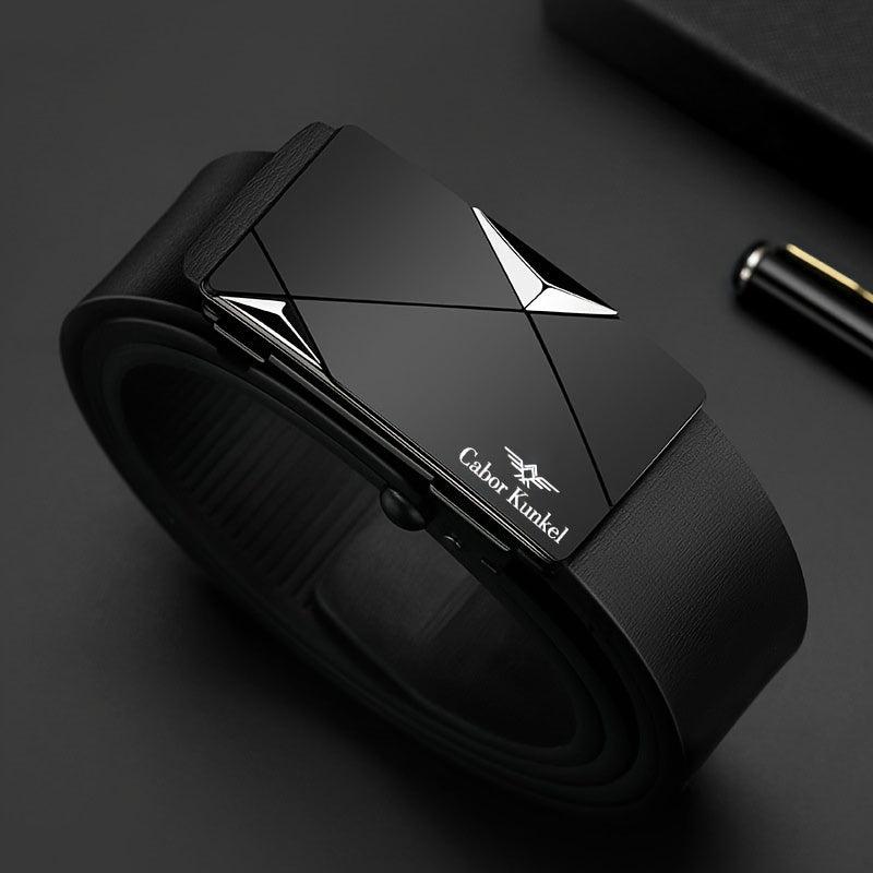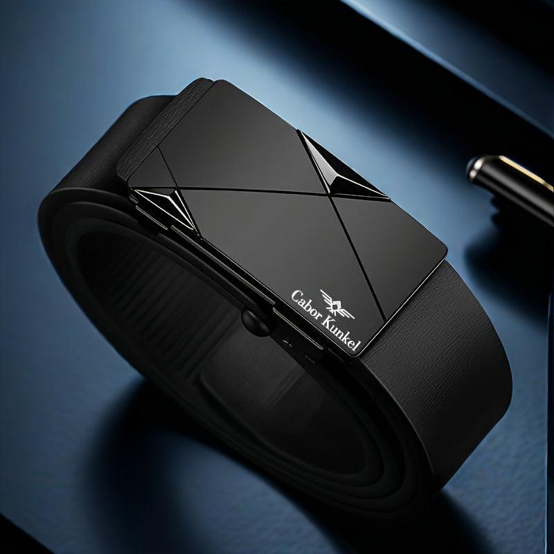 Upgrade your style with this fashionable leather belt designed for both casual and business wear. The automatic buckle ensures a secure fit without the hassle of teeth. Ideal for young and middle-aged men.