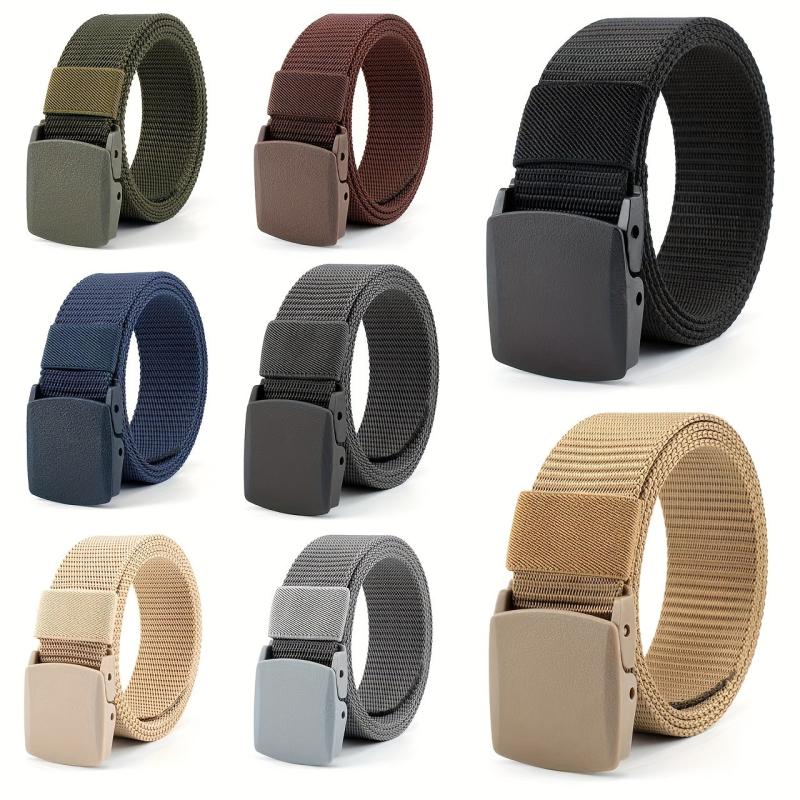 This unisex belt is designed with a hypoallergenic plastic buckle and breathable materials, making it ideal for casual wear and sport activities, perfect for everyday commute and outdoor adventures.