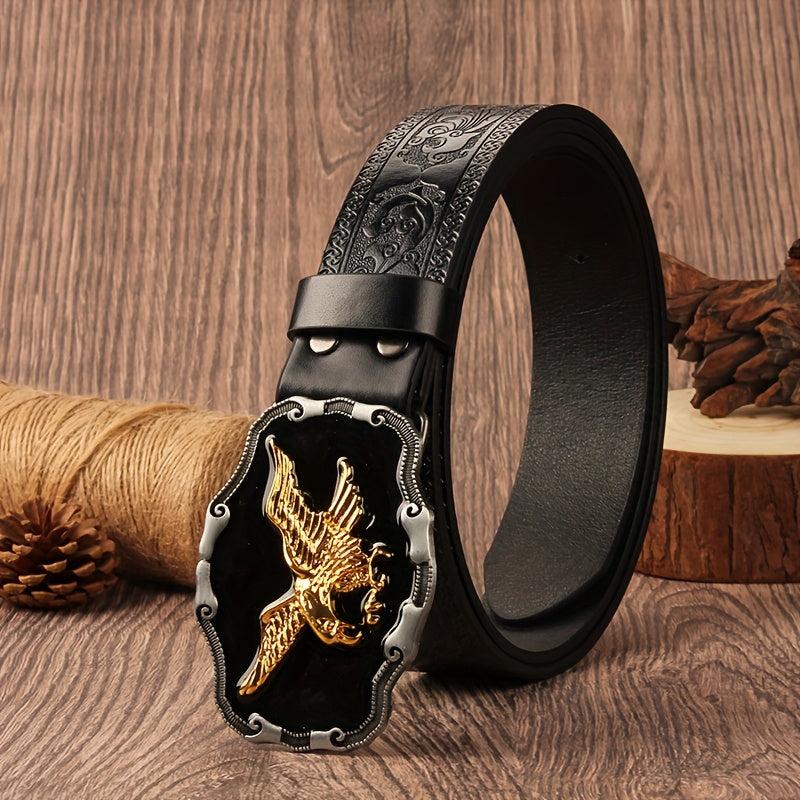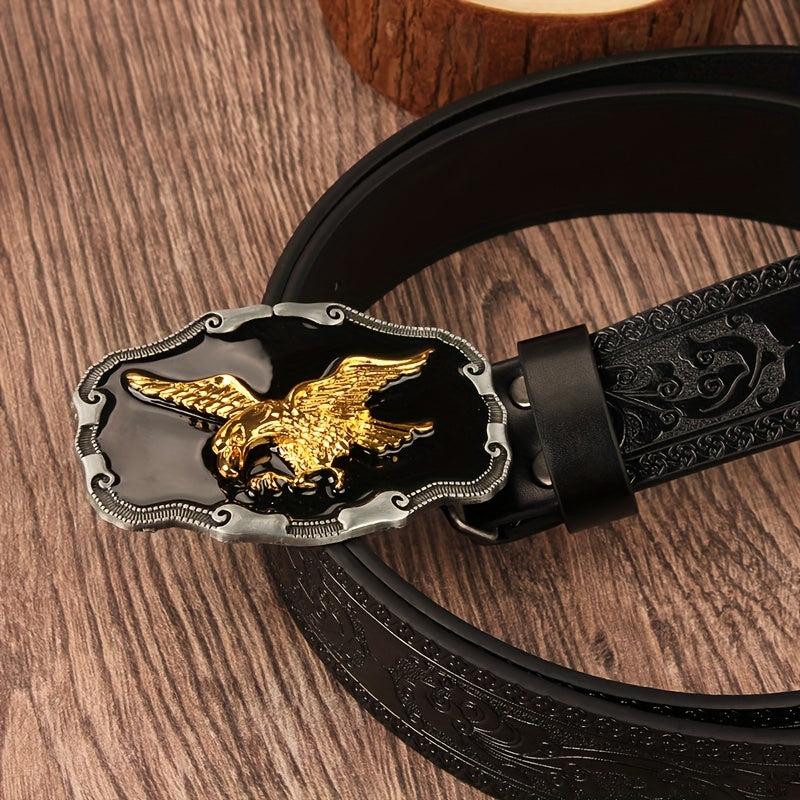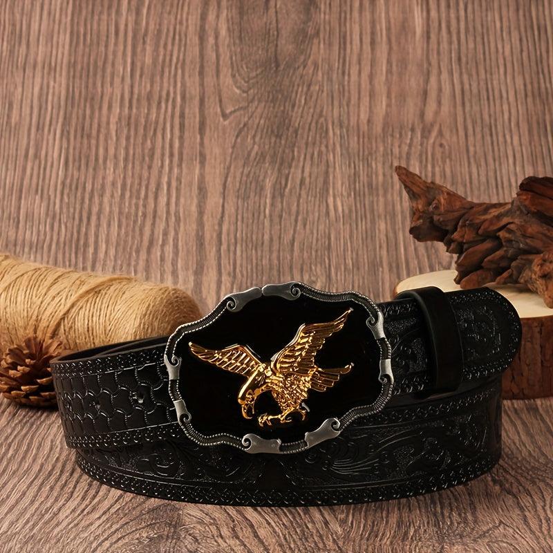 Western Retro Faux Leather Belt with Eagle Buckle 3 Wide Adjustable