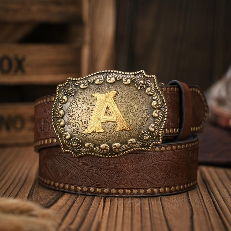 Upgrade your casual look with this vintage western style belt featuring an embossed letter A. The perfect gift for men and women who appreciate stylish accessories.