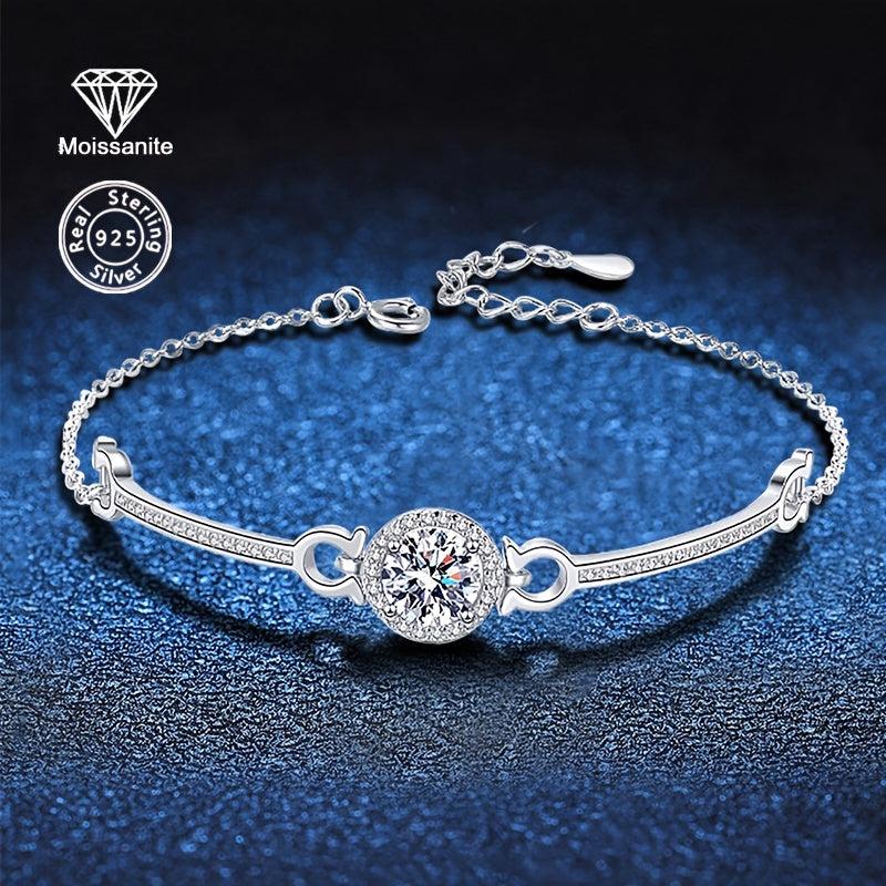 Elegant 925 Sterling Silver bracelet featuring a sparkling 1 carat Moissanite stone. Perfect for parties, banquets, and daily wear.