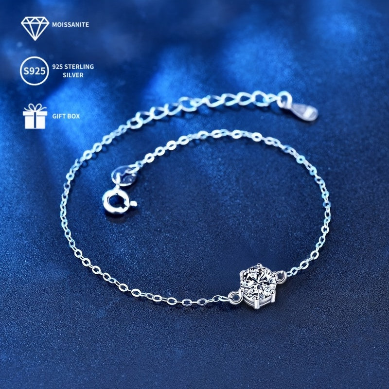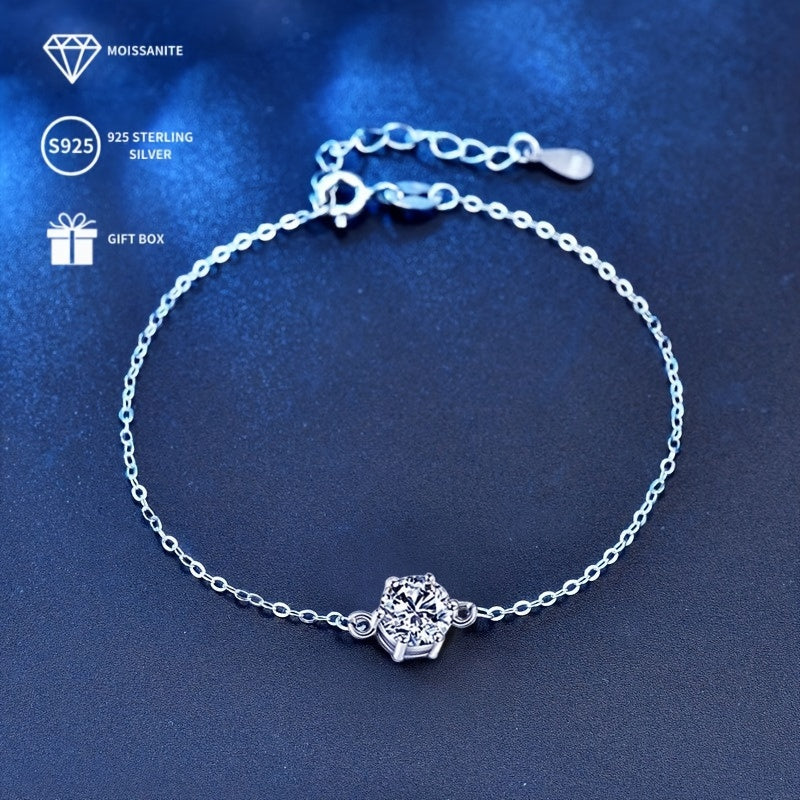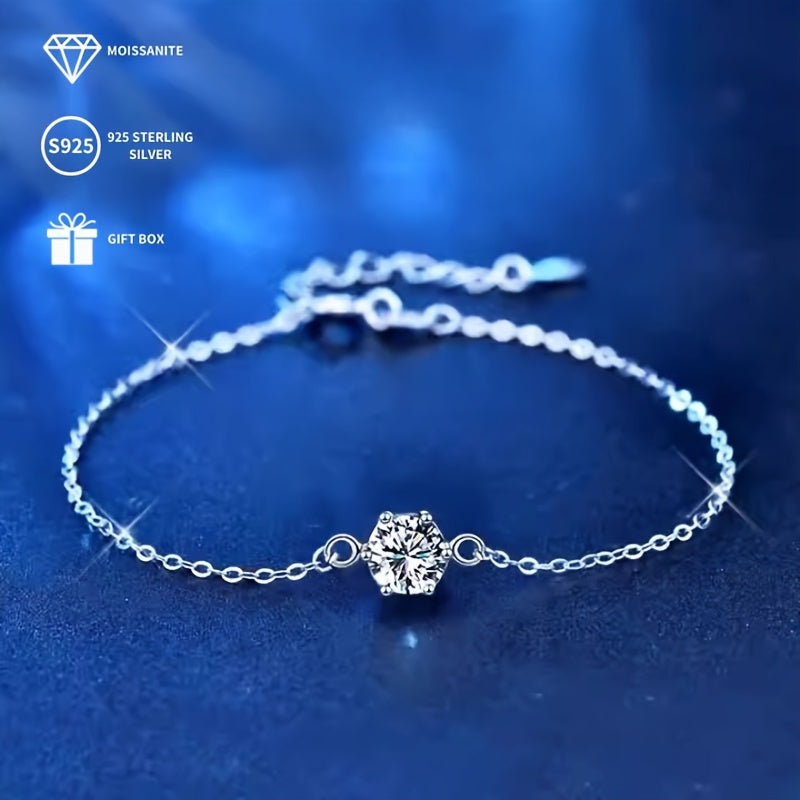This stunning bracelet set features a 1ct Moissanite stone in a S925 Sterling Silver six-prong setting. Perfect for daily wear or special occasions like parties and banquets.