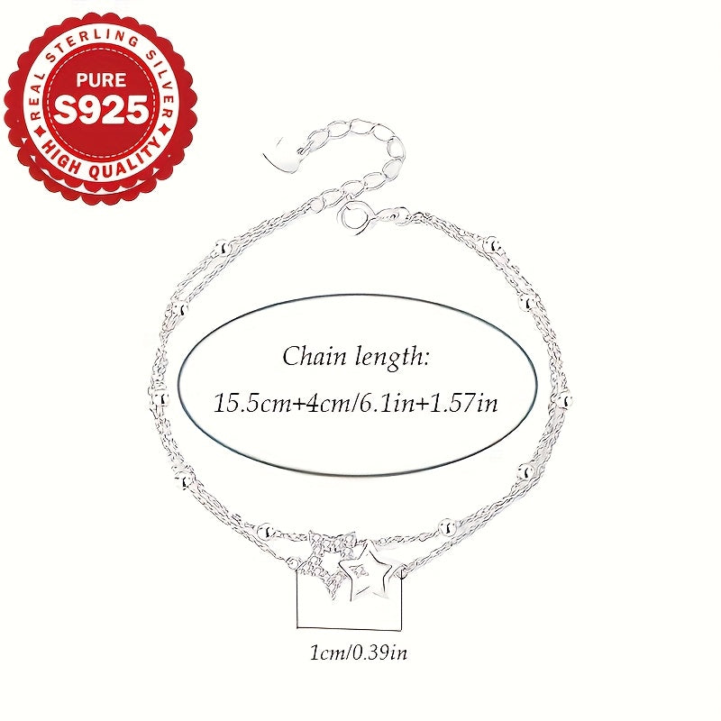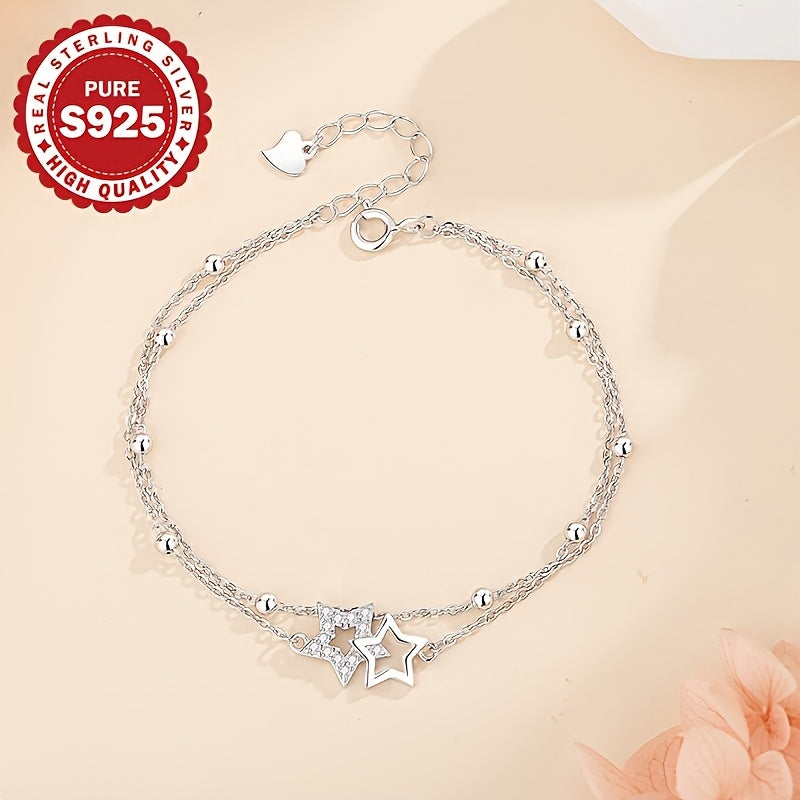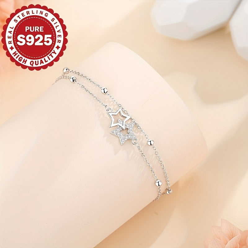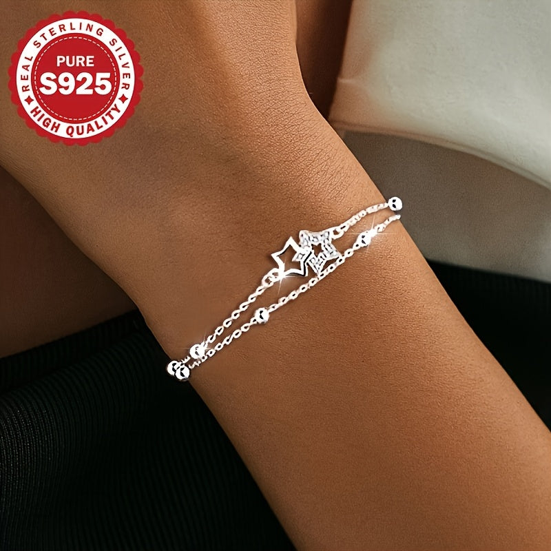 Add a touch of celestial charm to your look with this splicing bracelet. Crafted with S925 pure silver, it features a double-layer chain with a mix of cross and beading details, adorned with a shimmering five-pointed star zircon.