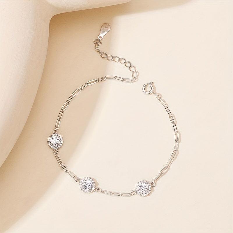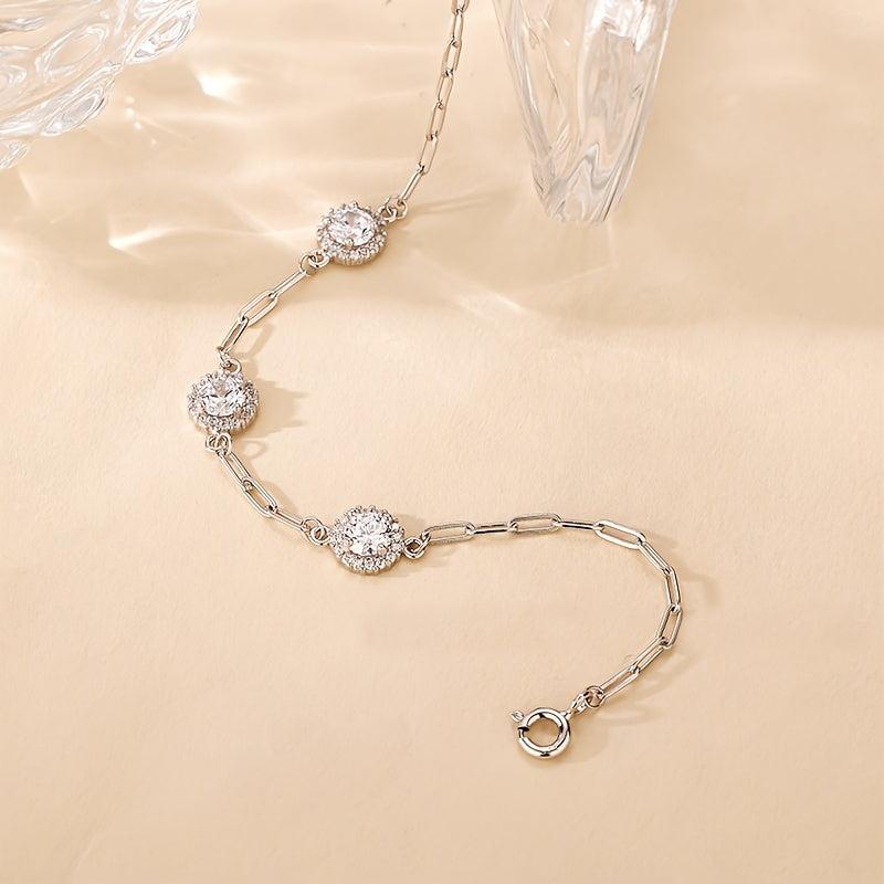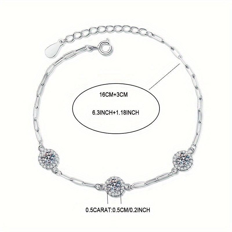 Elegant 925 sterling silver bracelet with 1.5 carat classic round package design. Perfect for casual and formal wear, suitable for both men and women.