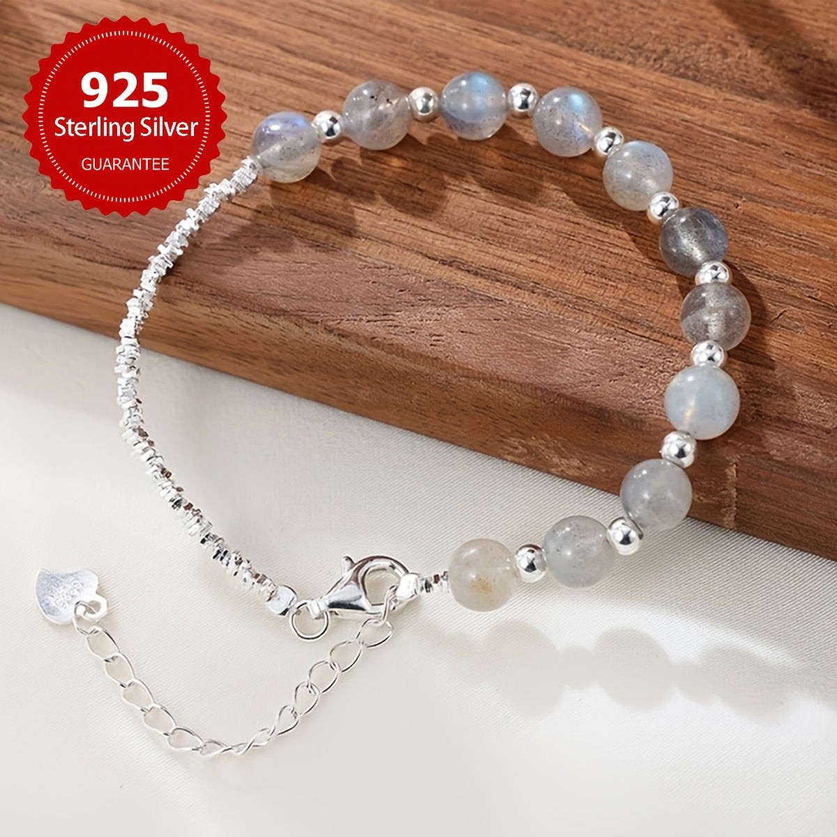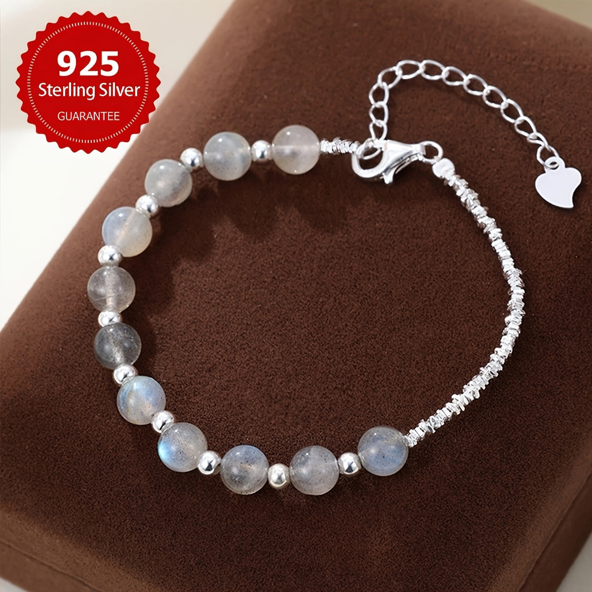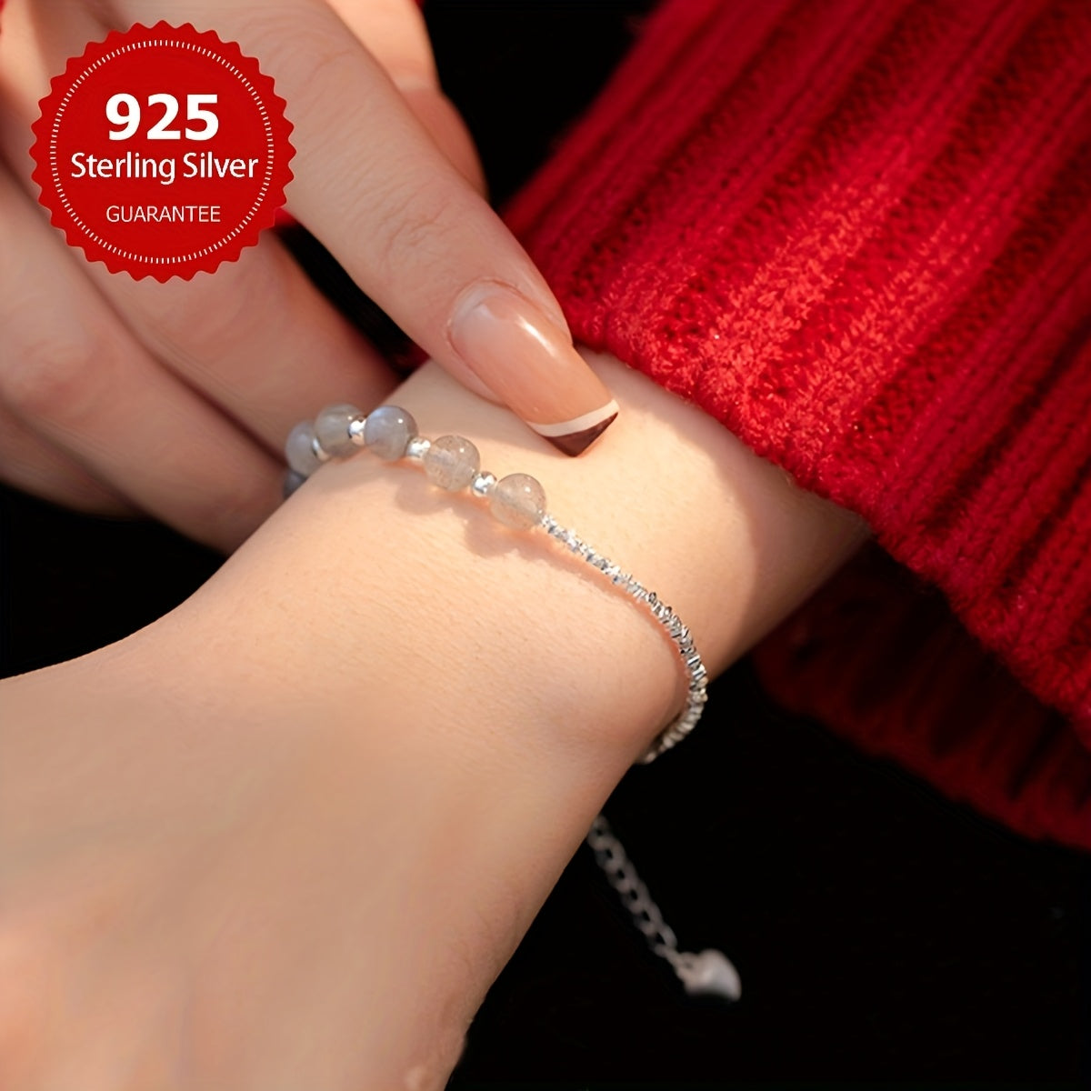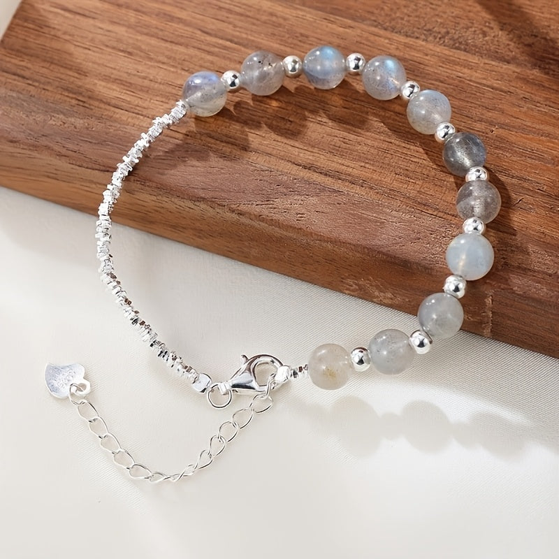 Elegant sterling silver bracelet featuring a beautiful half moonstone crystal. Perfect for everyday wear or as a special gift for Valentine's Day or any occasion.
