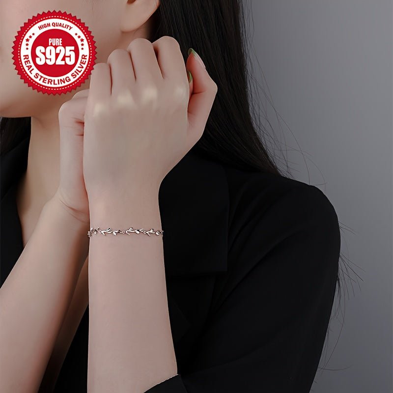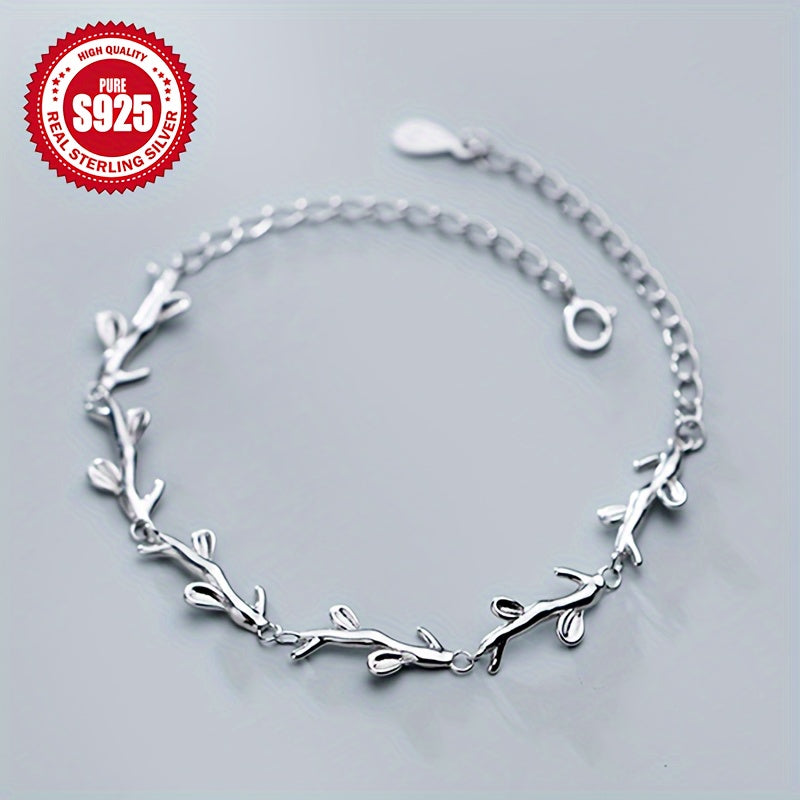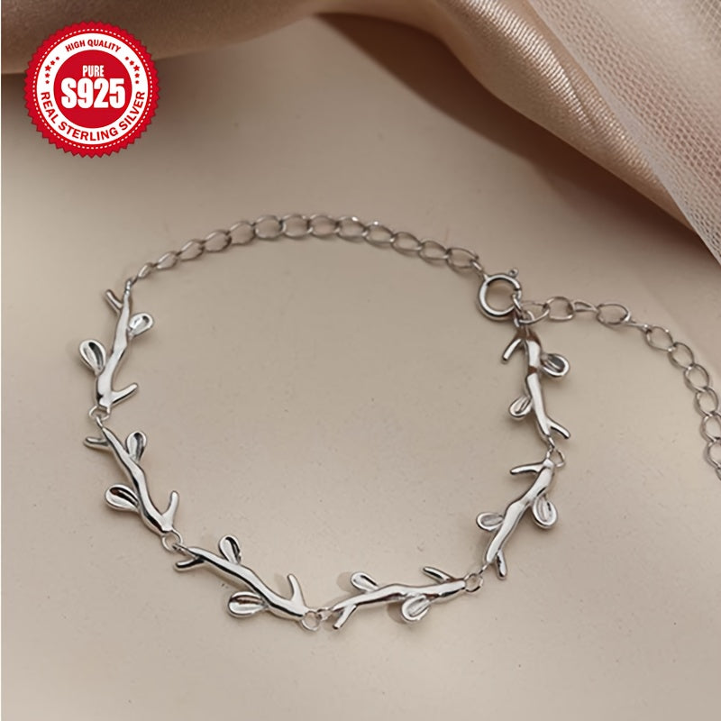 This 925 silver branch bracelet features a fresh forest style design, perfect for adding a touch of nature-inspired charm to your look. It is a classic and versatile piece that makes a great birthday or Christmas gift.
