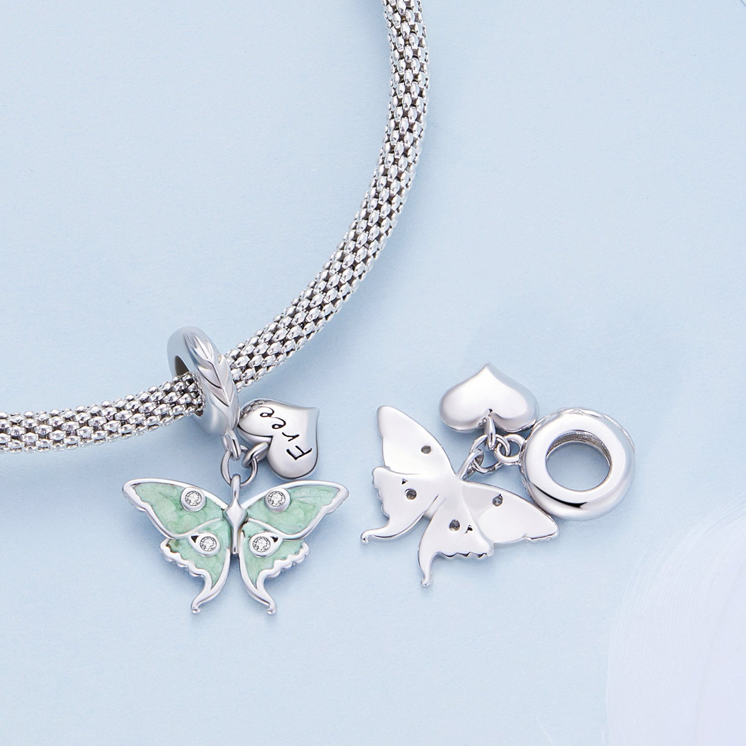 Add a touch of elegance to your DIY jewelry with this 925 sterling silver charm pendant featuring a butterfly and heart shape design. Perfect for bracelets and necklaces.