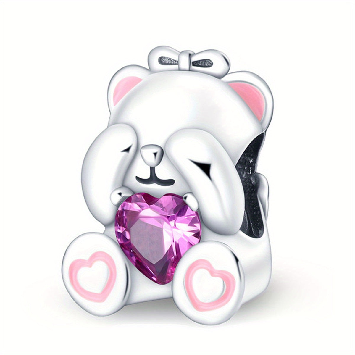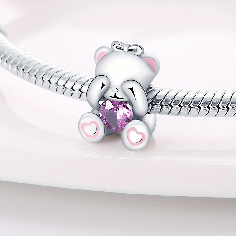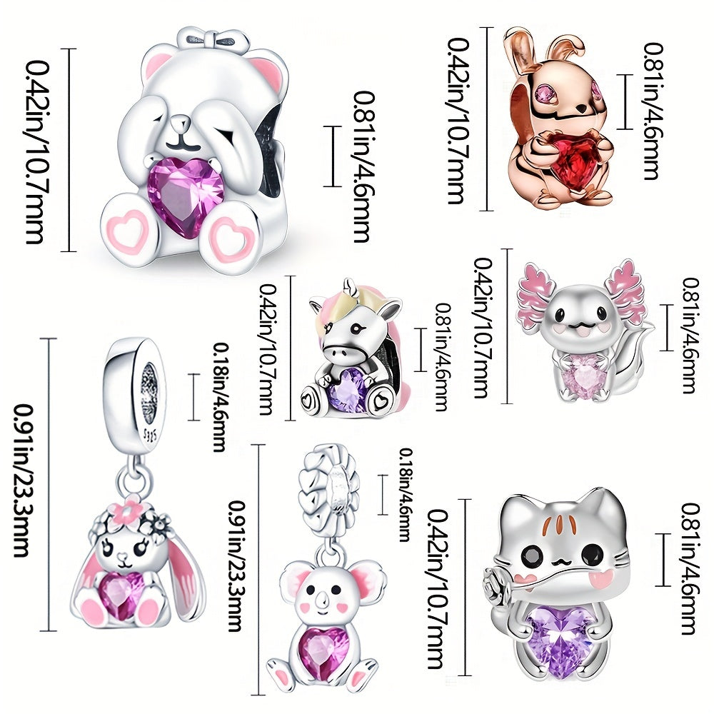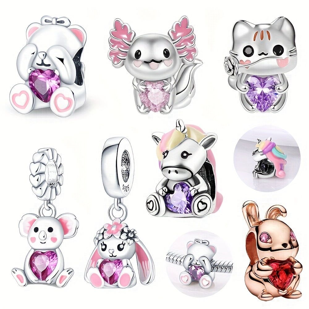 Add a touch of elegance to your bracelet with this 925 silver pet pendant charm featuring pink and purple crystals. Perfect for DIY bead projects.