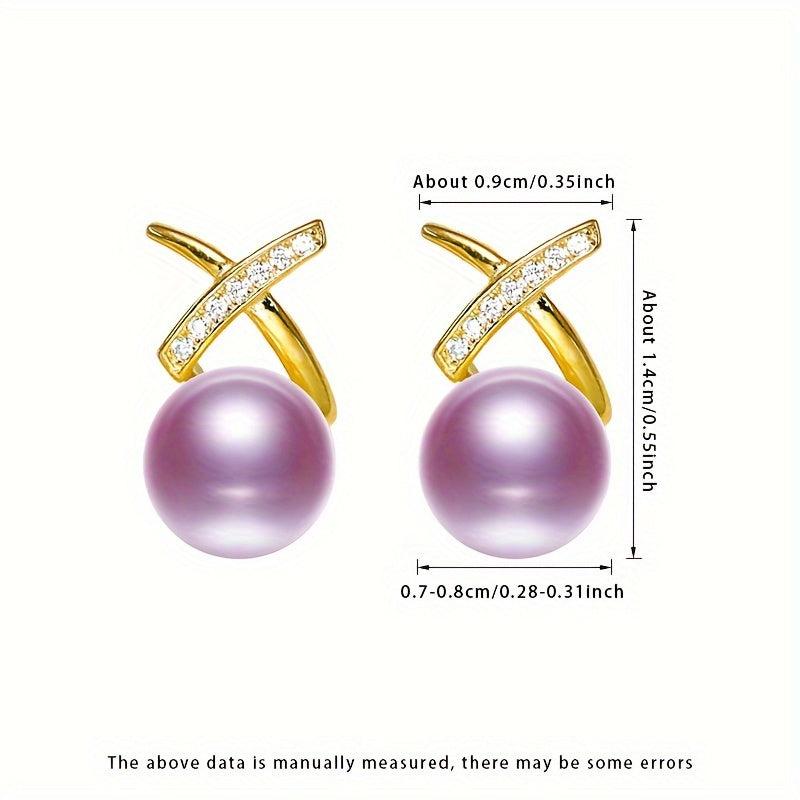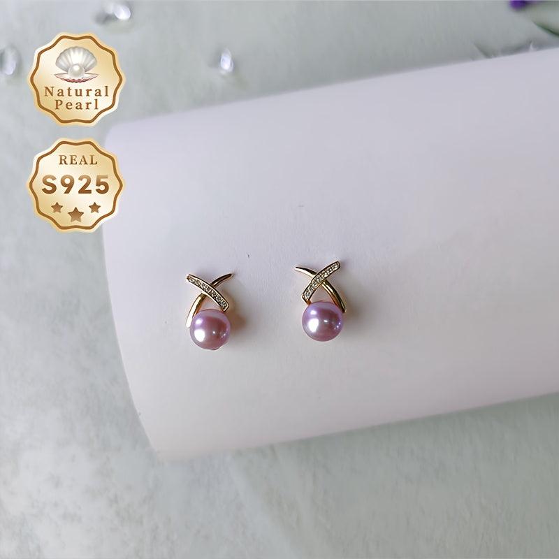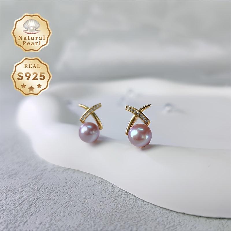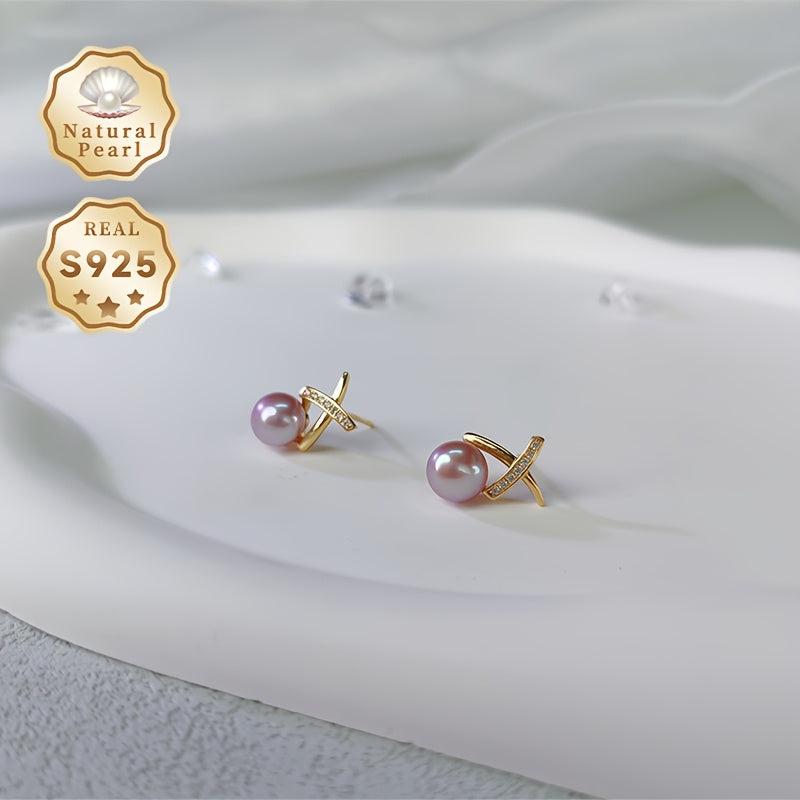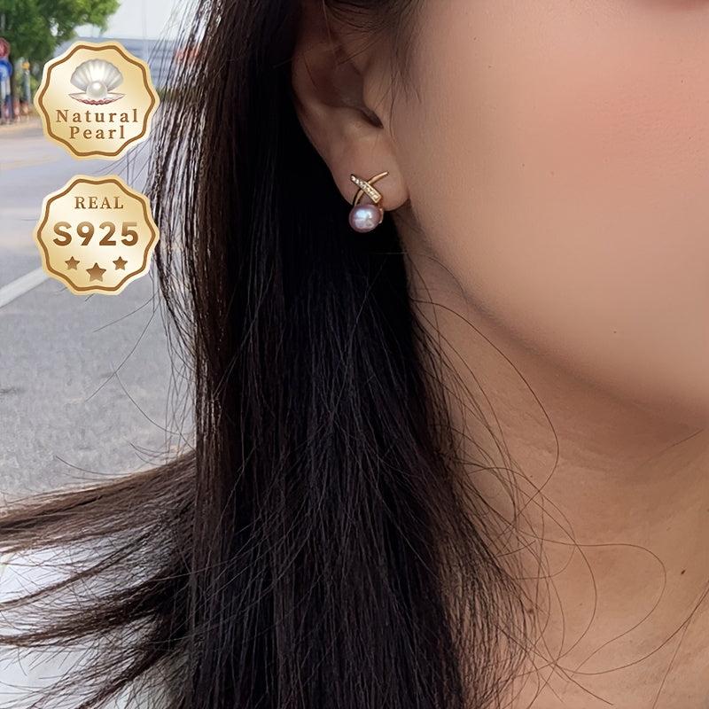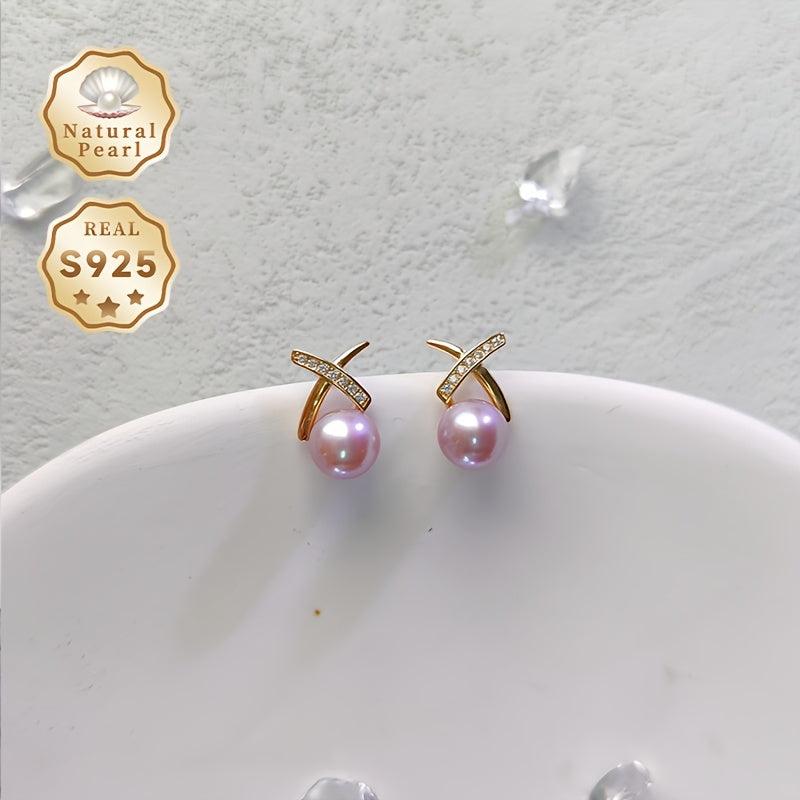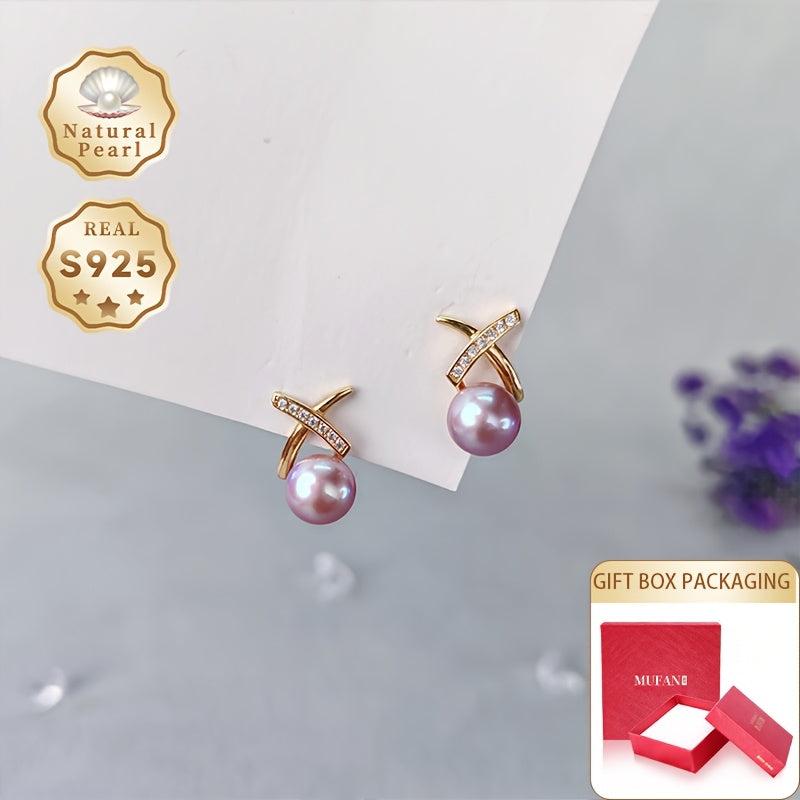 Elegant pair of 925 sterling silver earrings featuring 7-8mm natural freshwater pearls and zirconia stones. Perfect for daily and party wear in all seasons.