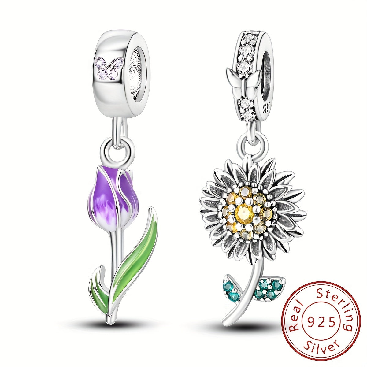 Beautiful 925 Sterling Silver flower series charm beads featuring tulip and sunflower designs. Perfect for creating DIY necklaces, bracelets, and as a thoughtful gift.