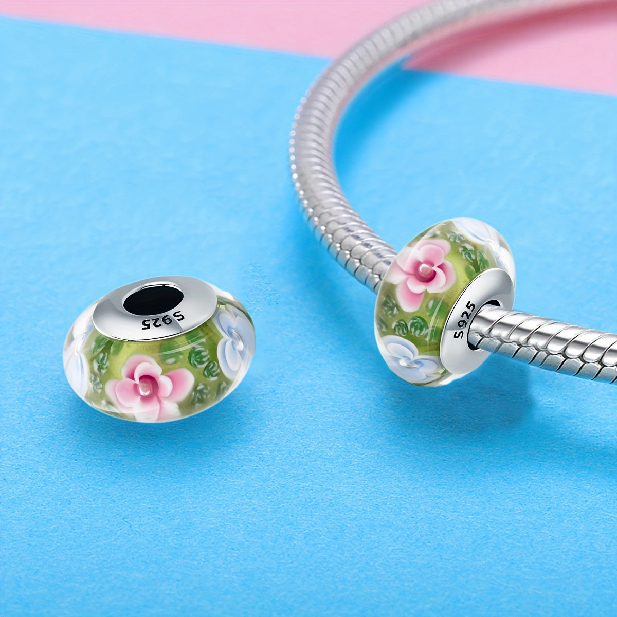 Enhance your jewelry collection with these stunning 925 silver flower glazed beads in a beautiful green color. Perfect for snake bone chain bracelets and necklaces.