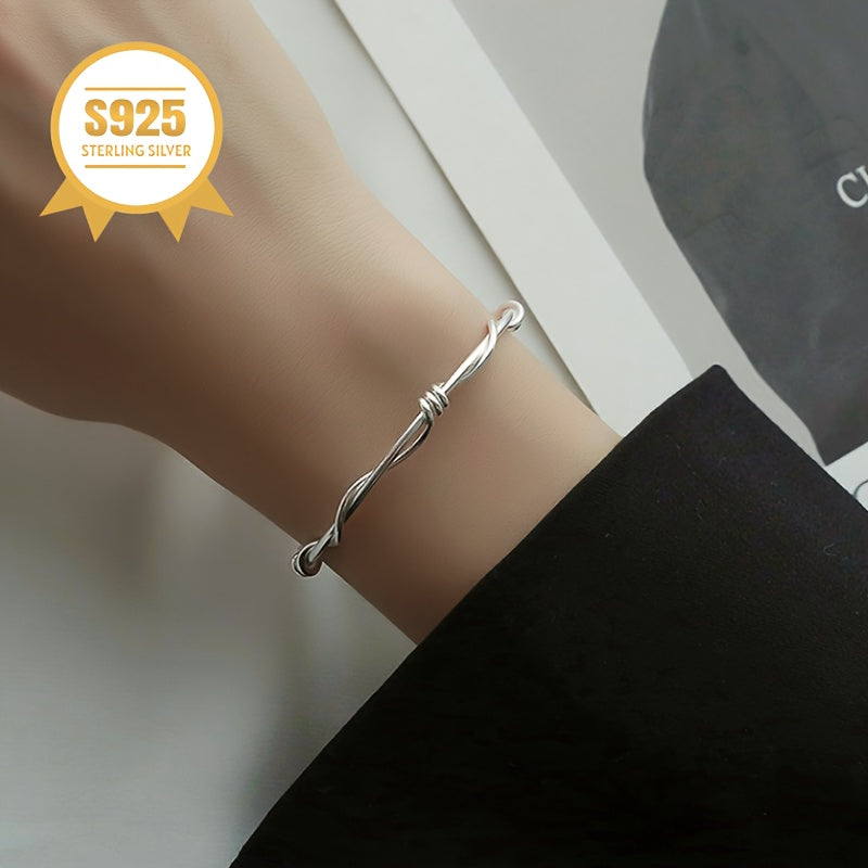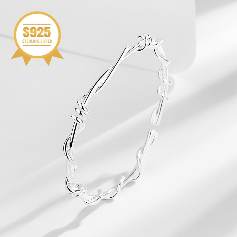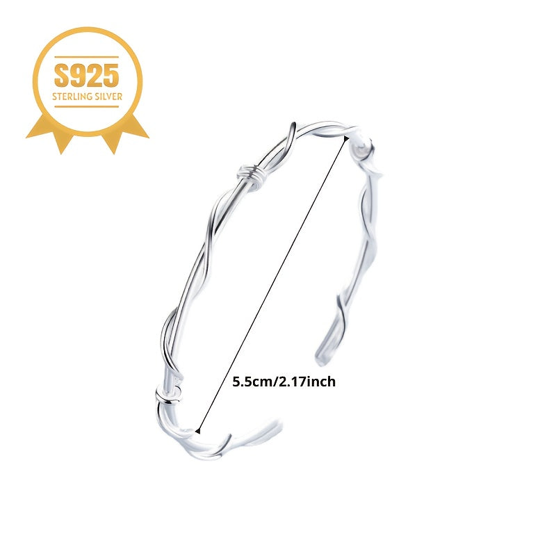 This 925 Sterling Silver cuff bracelet features a geometric design with a twisted pattern. It is hypoallergenic and handcrafted to ensure quality. The open cuff style makes it easy to wear and adjust to your wrist size.