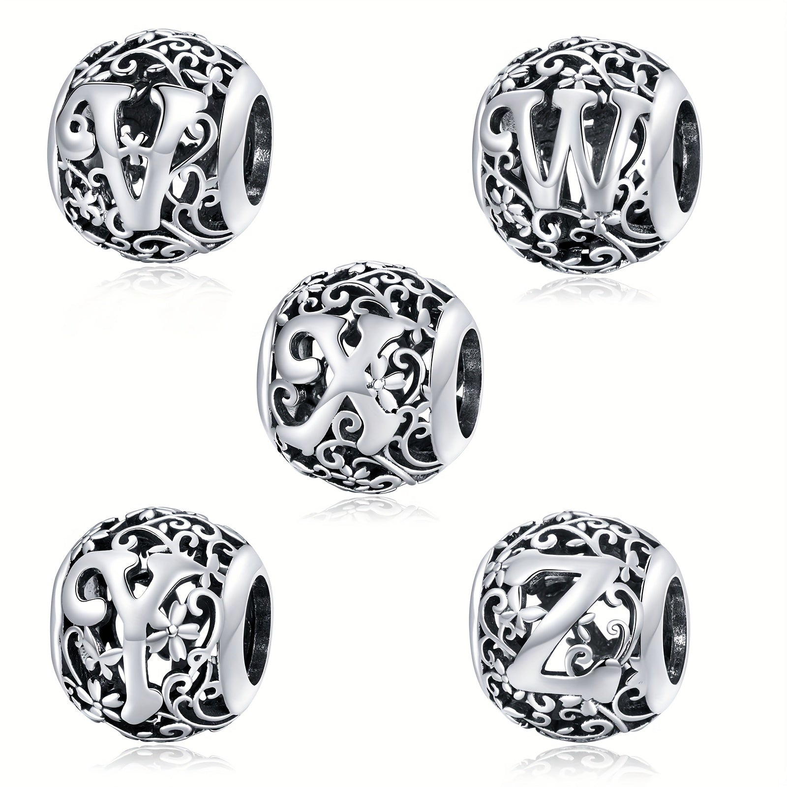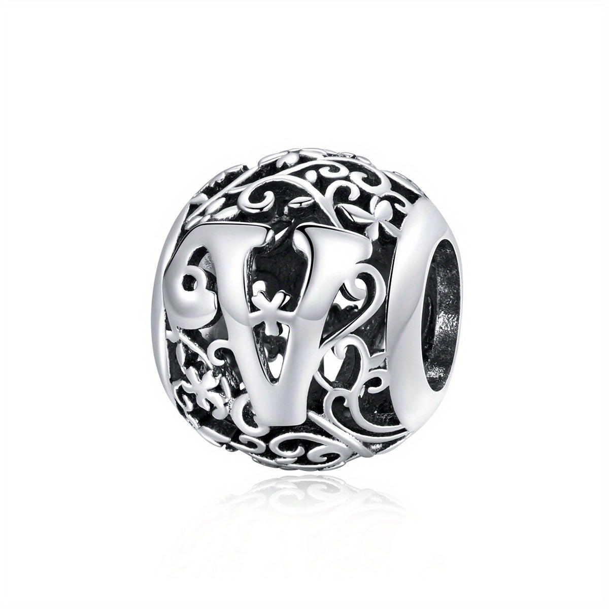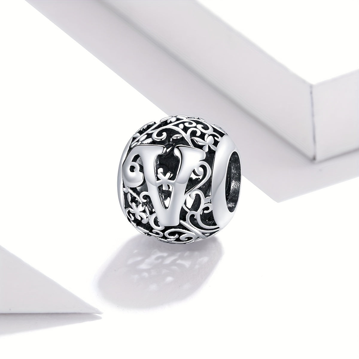 Vintage style 925 sterling silver letter V round beads for creating personalized jewelry. Can be used for bracelets, necklaces, and various crafts.