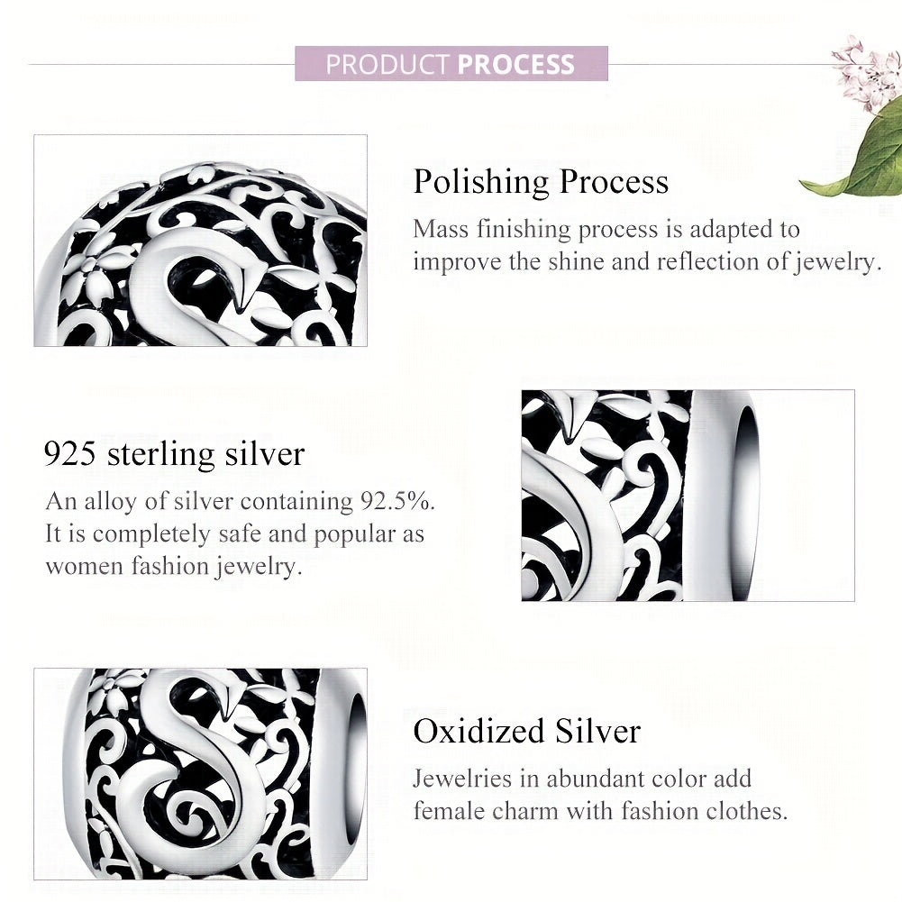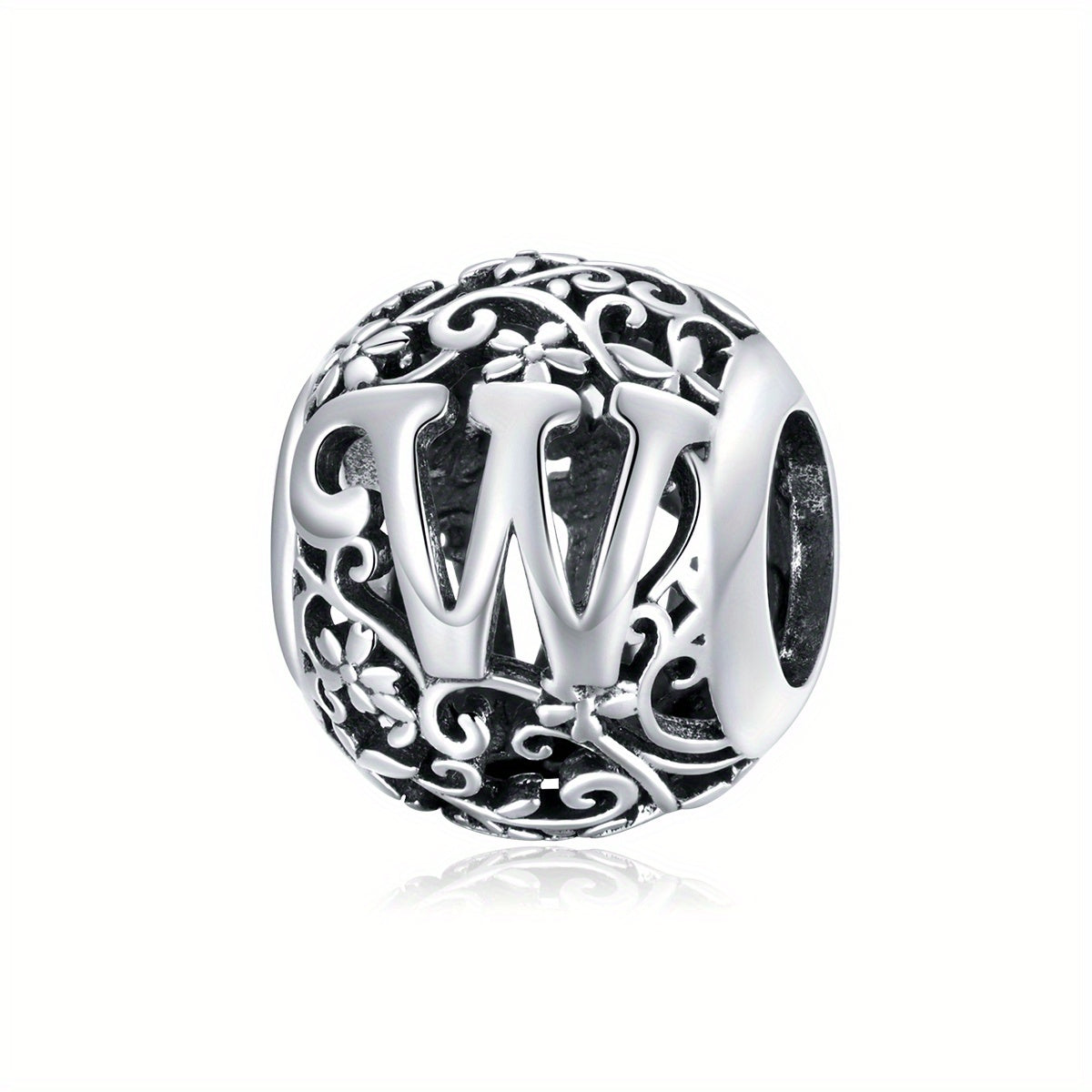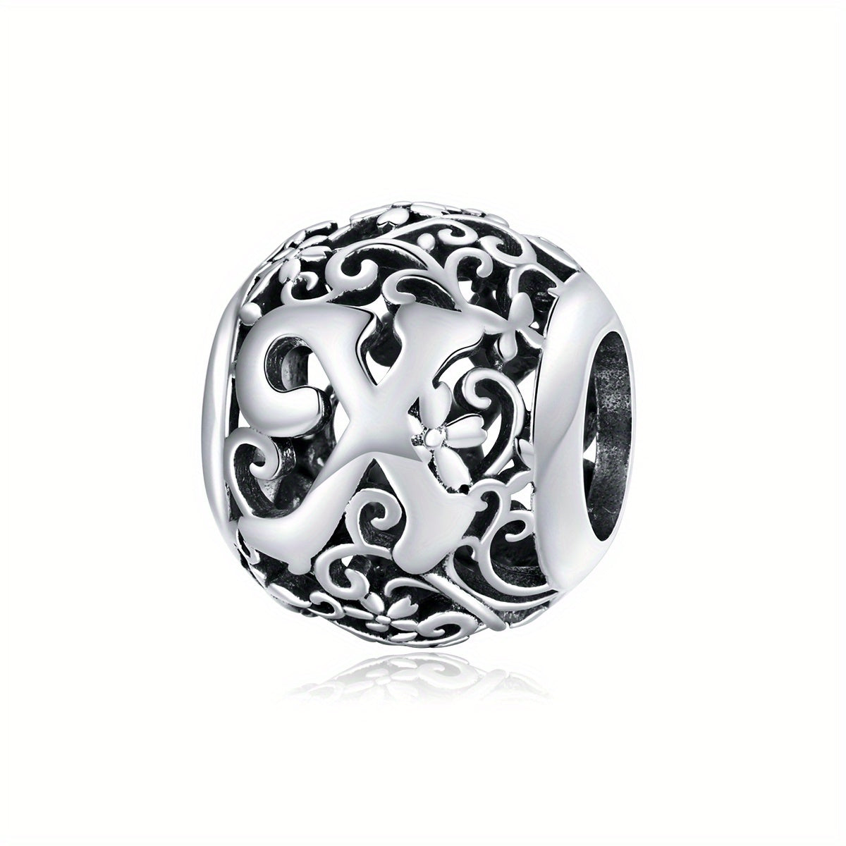 Vintage style 925 sterling silver letter V round beads for creating personalized jewelry. Can be used for bracelets, necklaces, and various crafts.