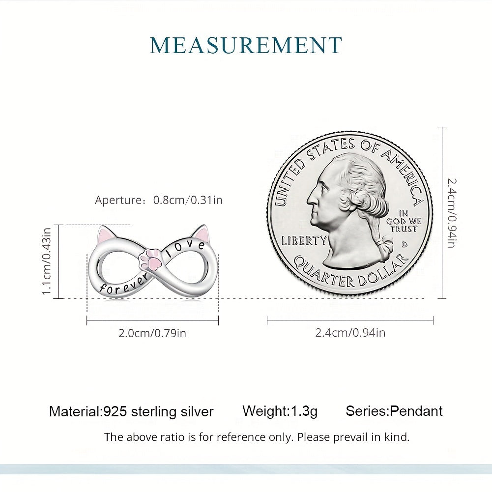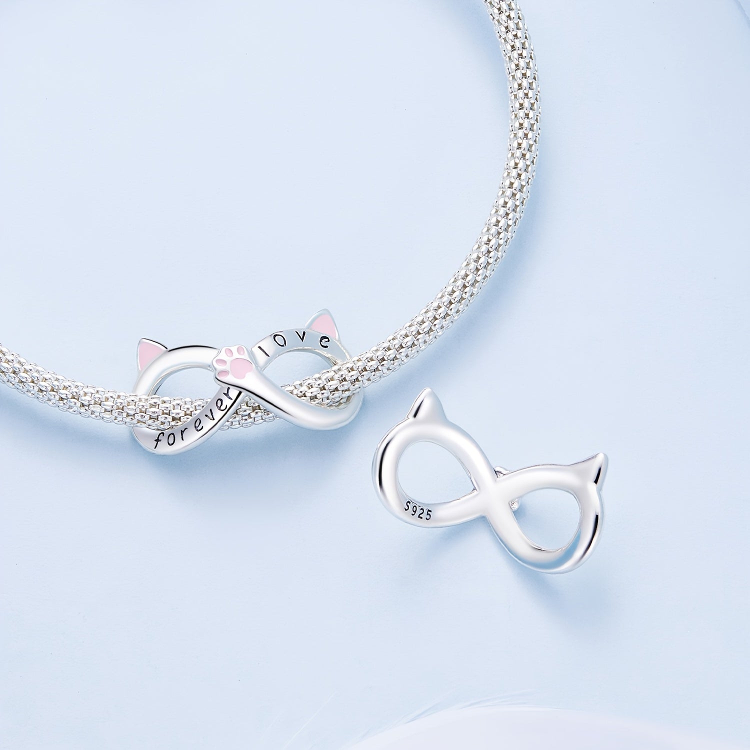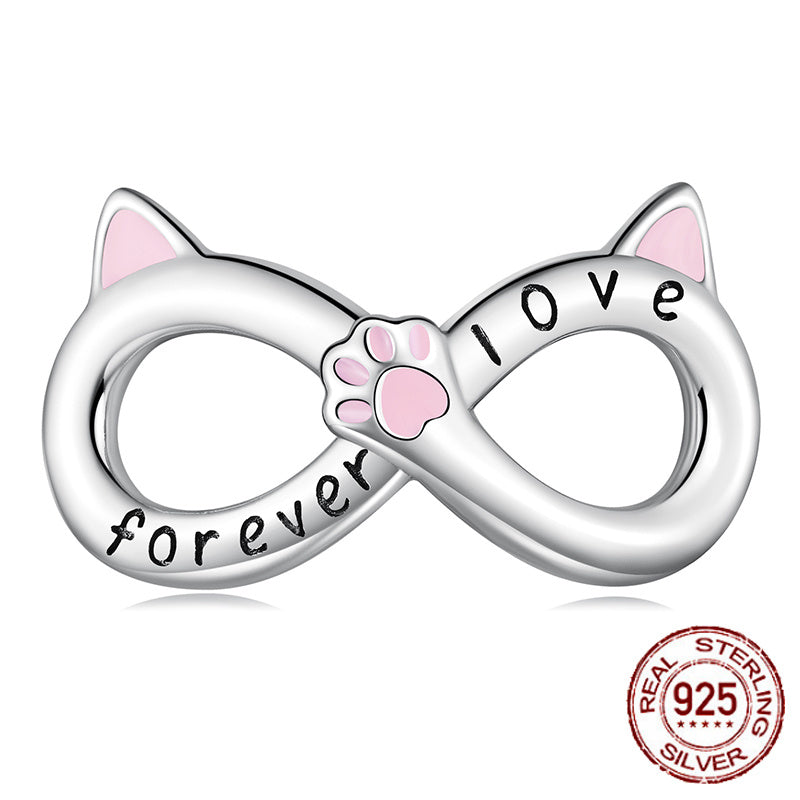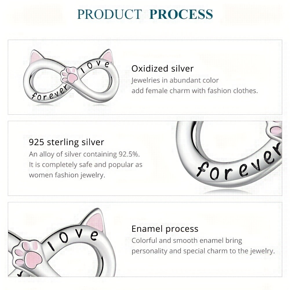 This adorable 925 sterling silver bead features an infinity cat design with paw prints, perfect for any cat lover. The bead drop oil adds a unique touch to your jewelry collection.